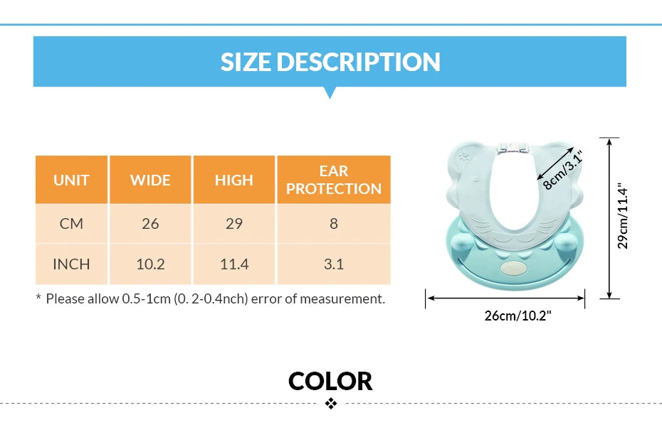 Make bath time fun and hassle-free with our Kids Visor Shampoo Cap in charming Hippo Style. Crafted from soft and flexible silicone, this visor cap is specially designed to protect your baby's eyes and face from water and shampoo during bath time.