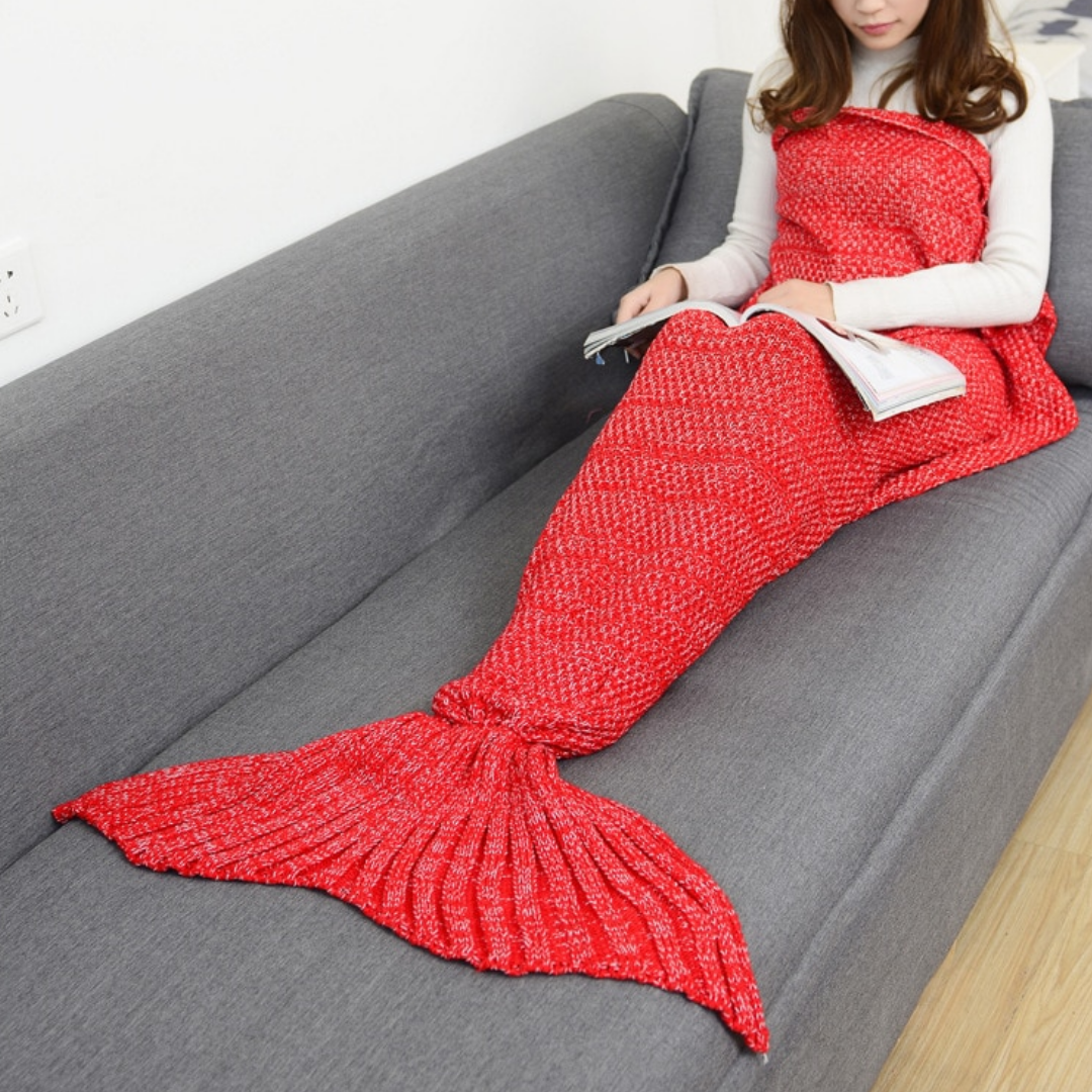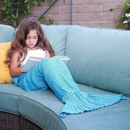 Manta a juego de sirena tejida