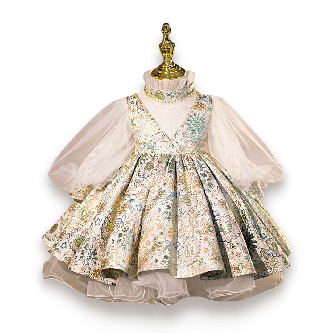 Vestido de fiesta de princesa realeza con diseño floral y encaje