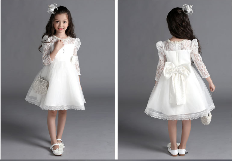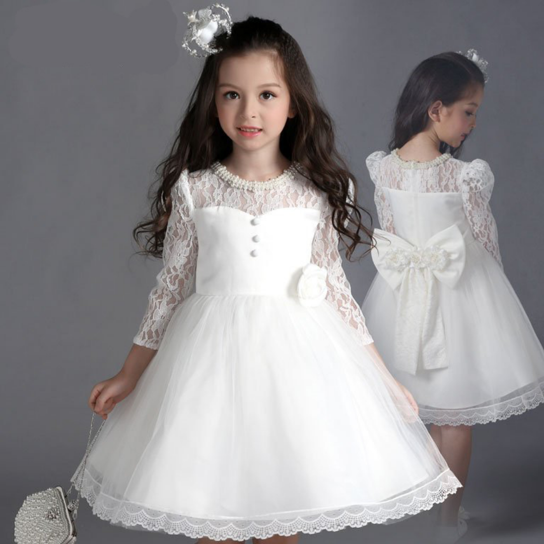 Lace Up Pearl and Bow Design White Princess Party Dress