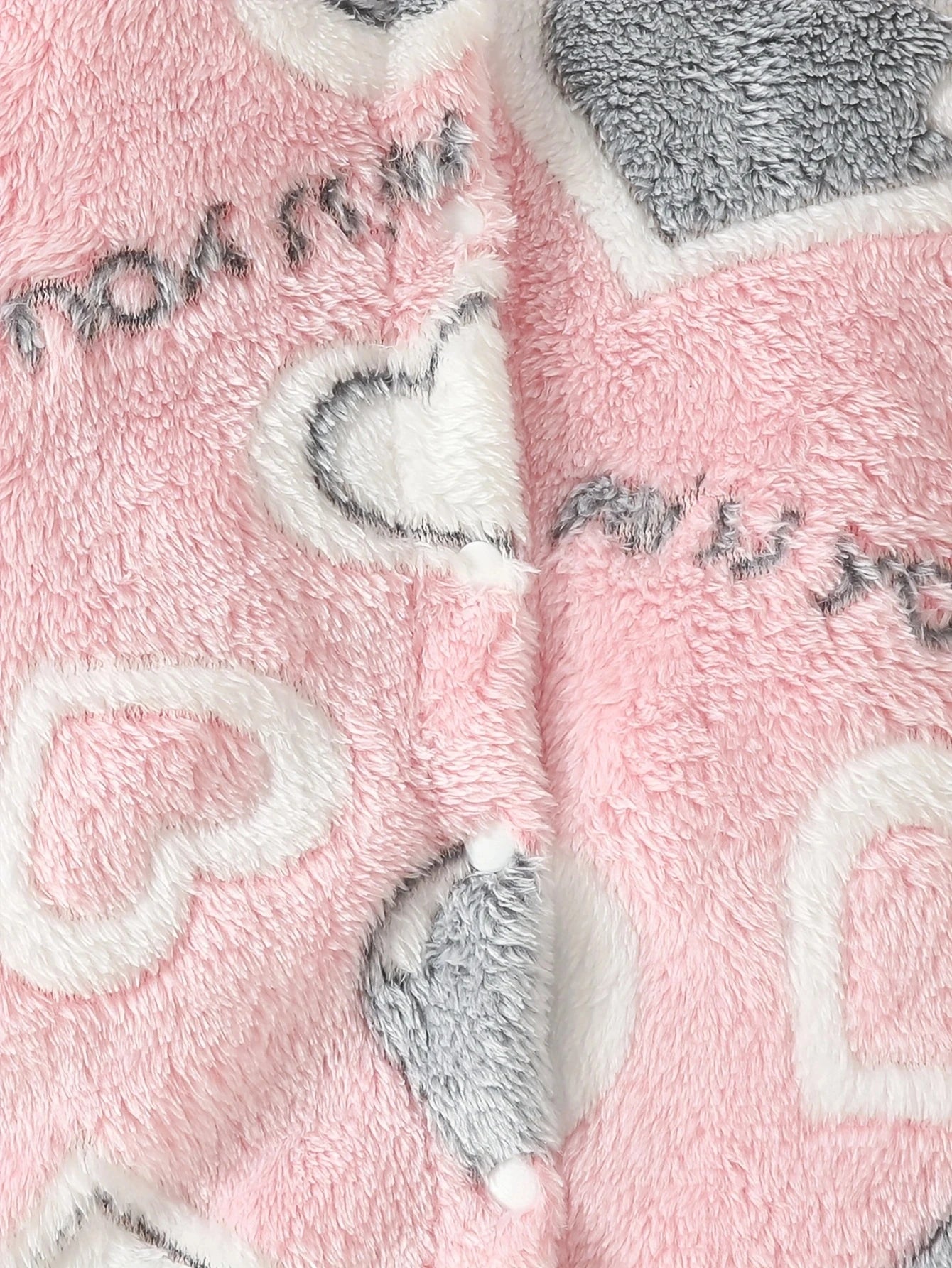 Mono con capucha borrosa con patrón de amor - Mameluco de invierno para niños pequeños