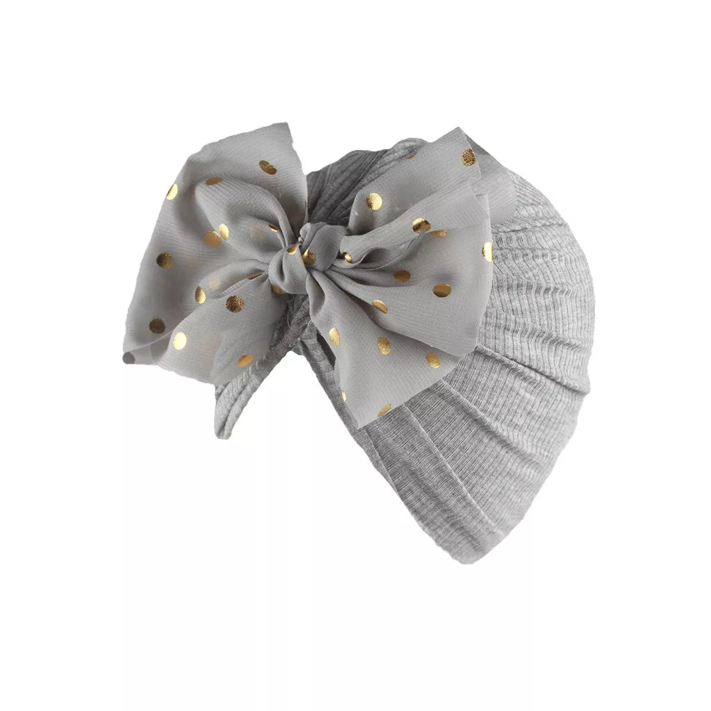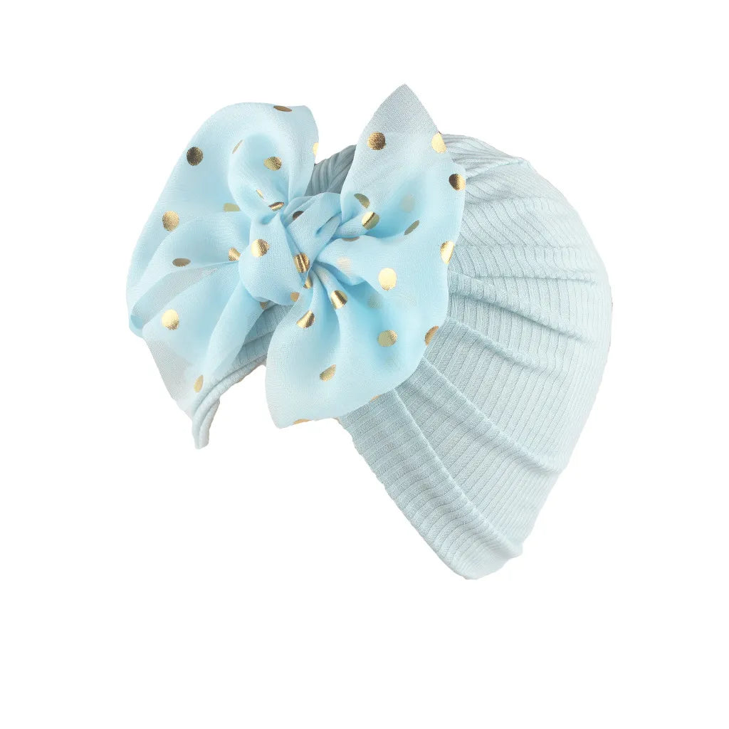 Precioso sombrero de bebé con lazo brillante: lindo turbante de color sólido