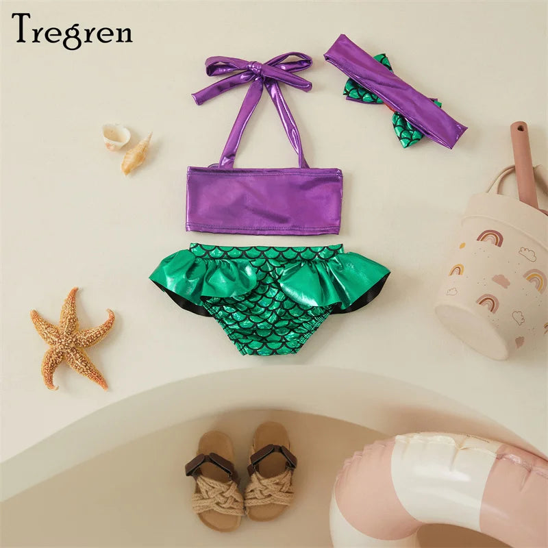 Prepara a tu sirenita para un verano de diversión y aventuras con nuestro conjunto de bikini de sirena para niñas pequeñas. ¡Haz tu pedido ahora y deja que comiencen las aventuras acuáticas! 🐚👧🧜♀️