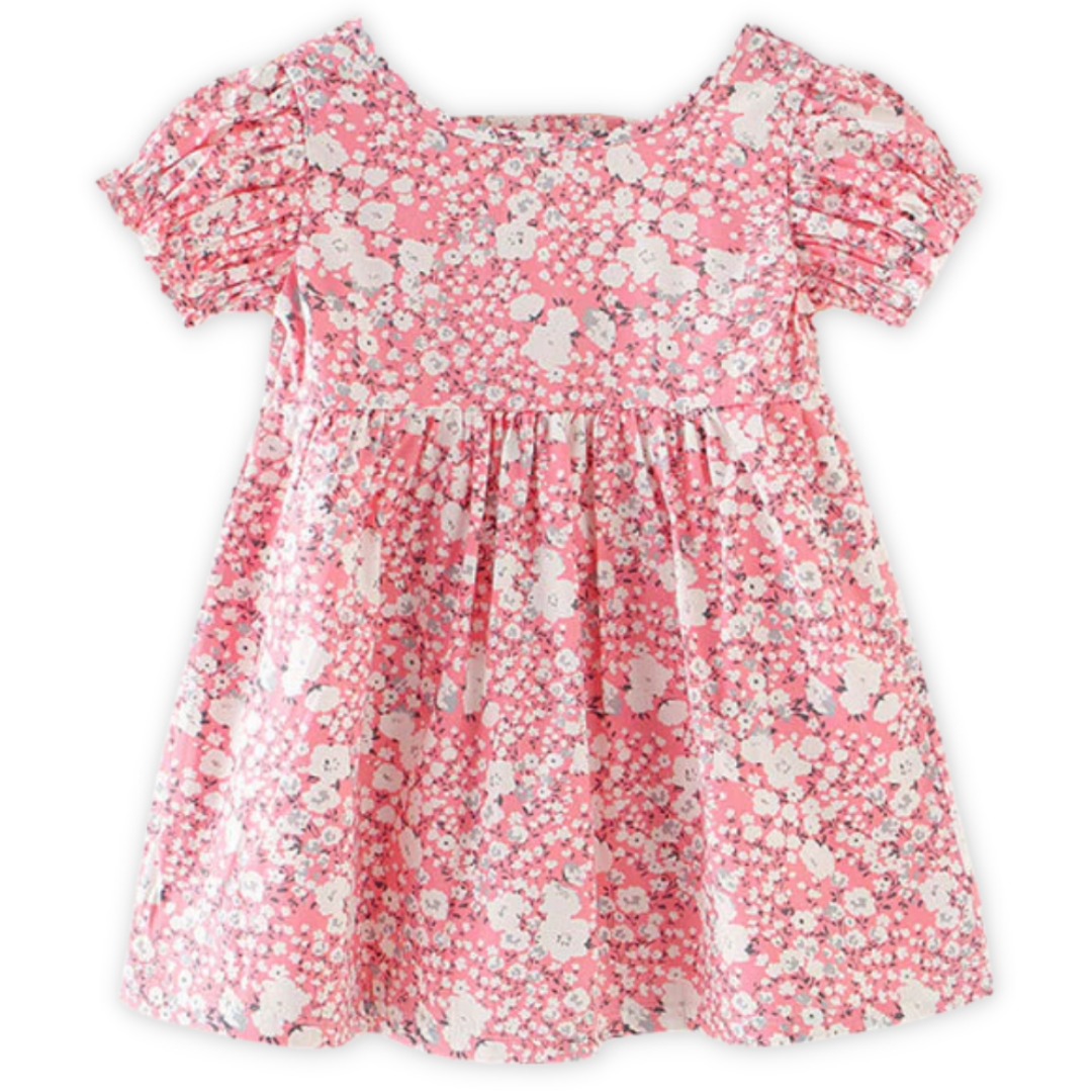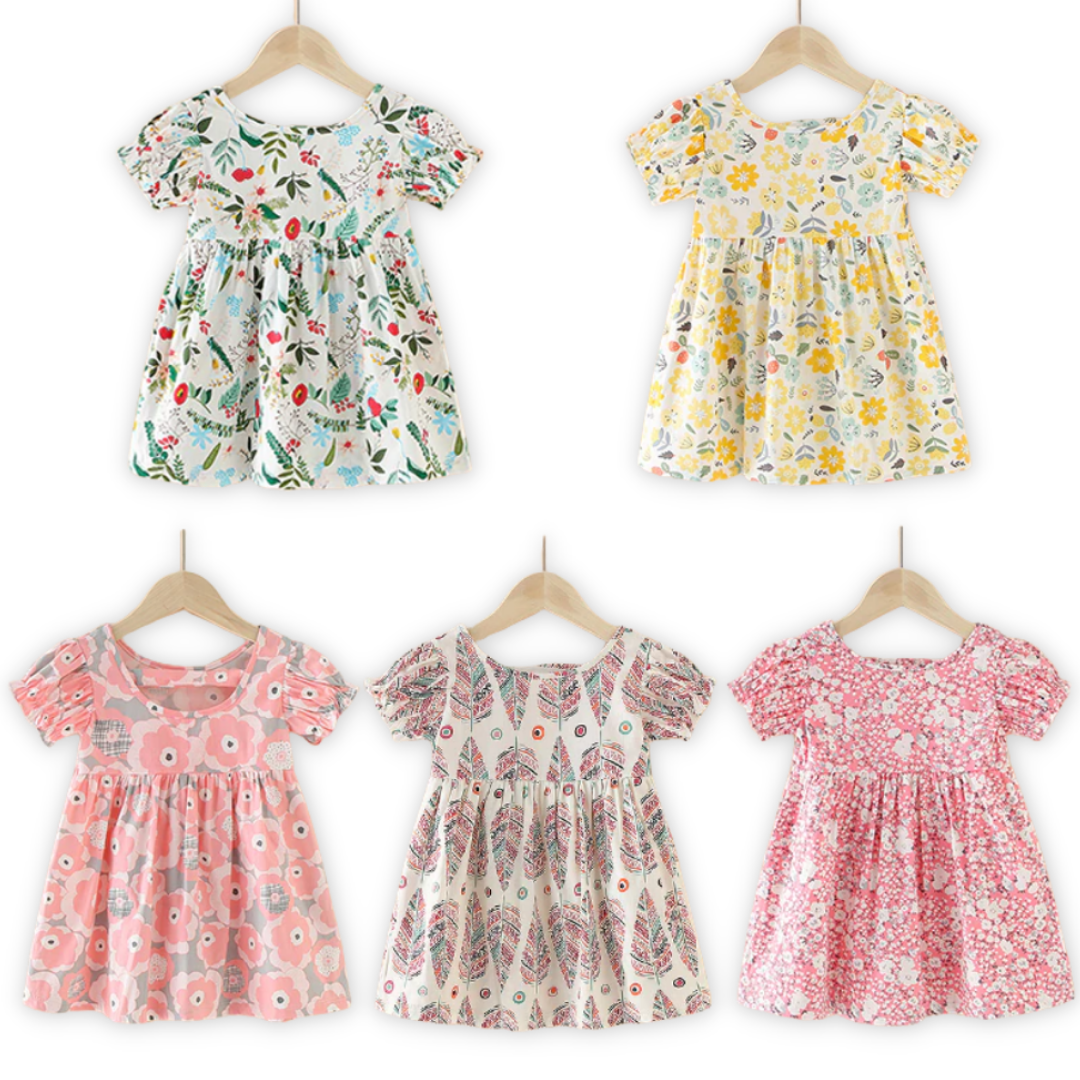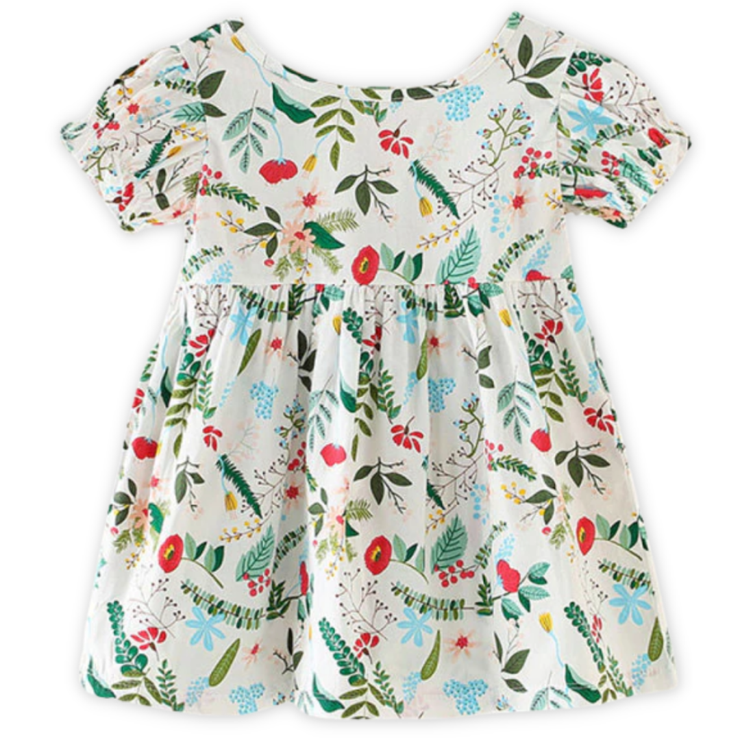 Nature Pattern Print Baby Girl Puff Sleeves Sundress