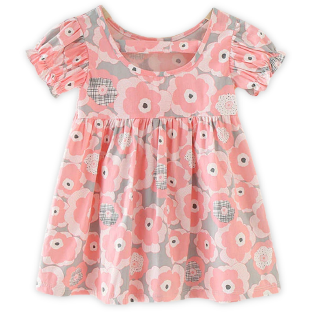 Vestido veraniego con mangas abullonadas para bebé niña con estampado de patrón natural