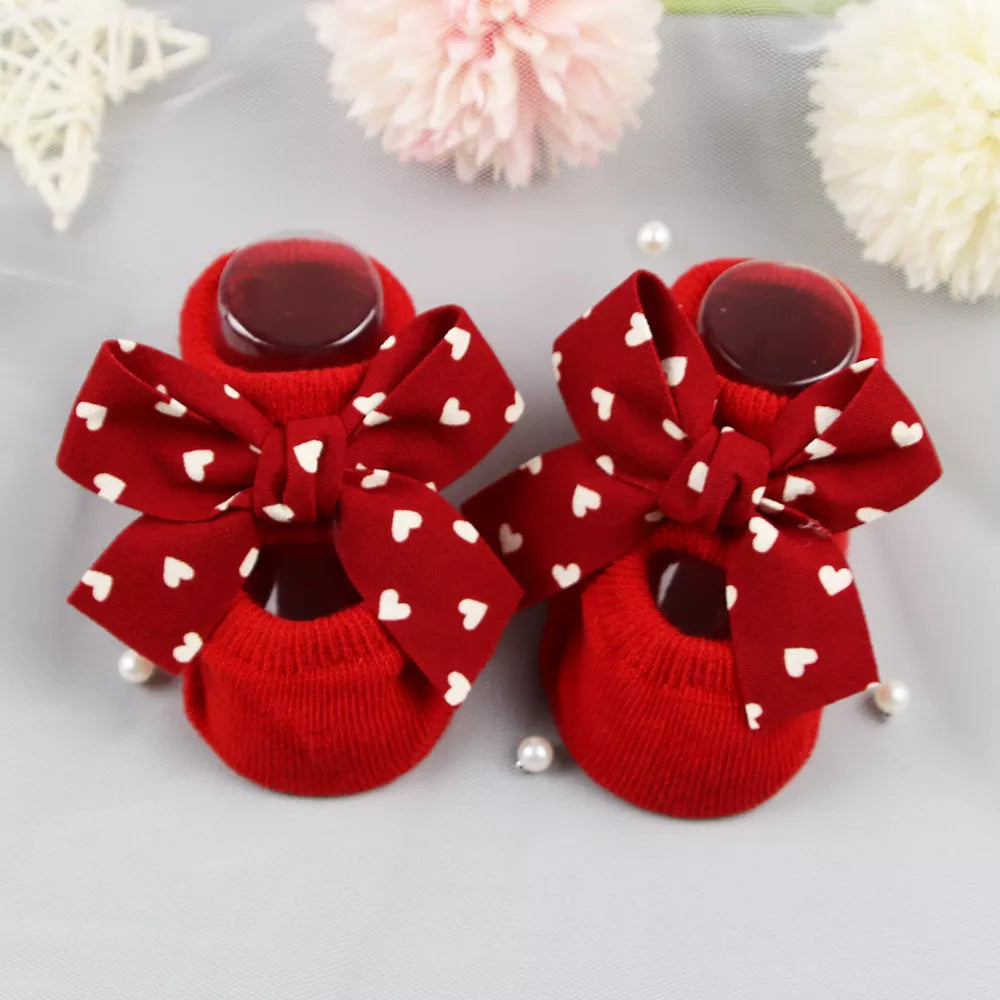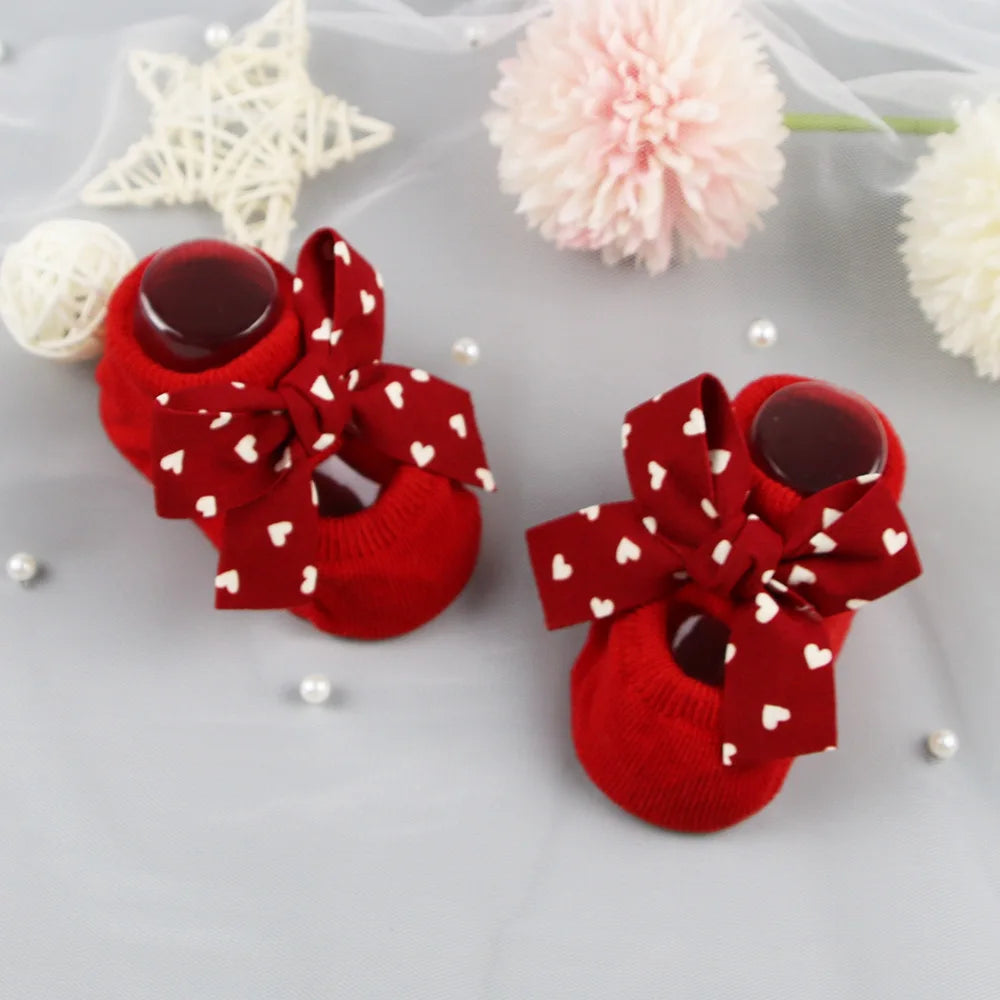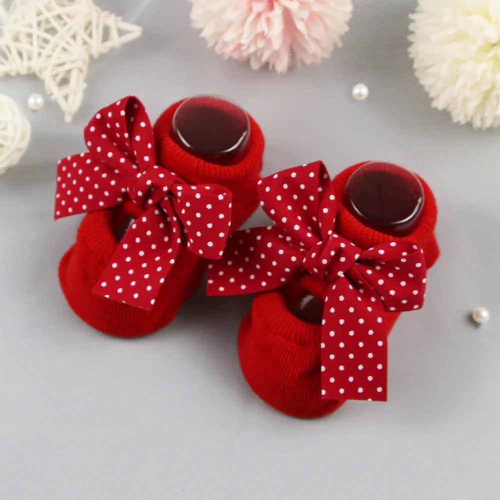 Calcetines de algodón con lazo para recién nacidos: suelas de goma antideslizantes para bebés