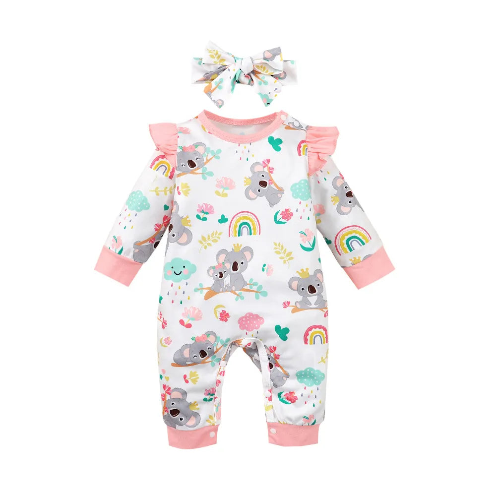 Conjunto de body de dibujos animados para recién nacido - Manga larga con diadema