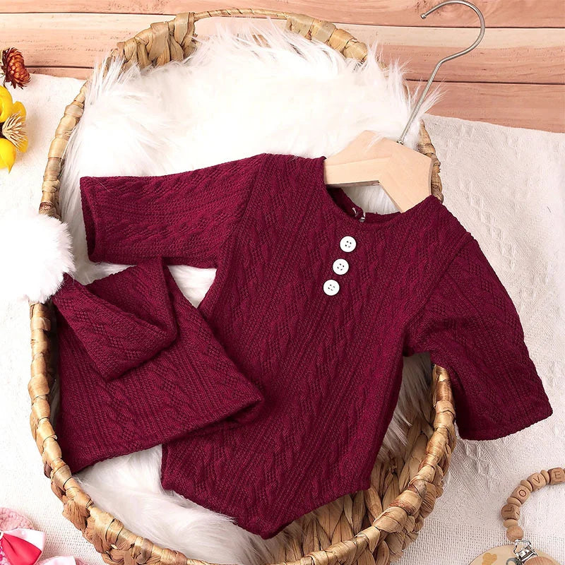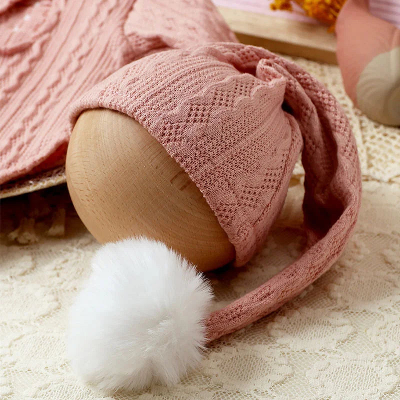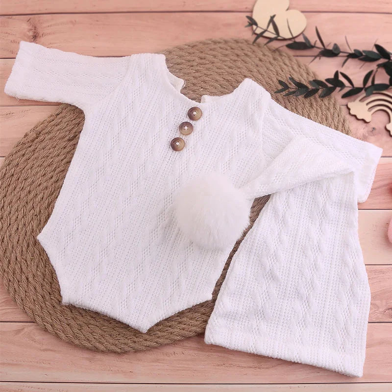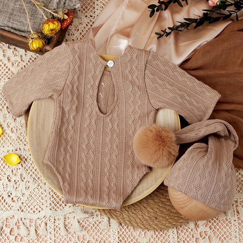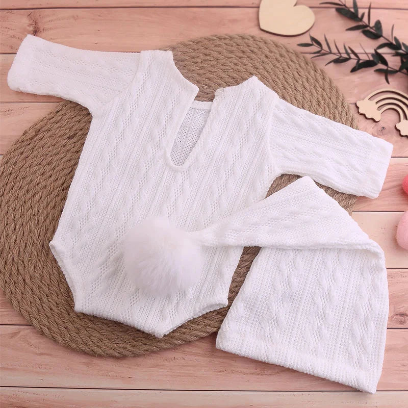 Accesorios de fotografía para recién nacidos: Conjunto de mono tejido para bebé con gorro con pompón