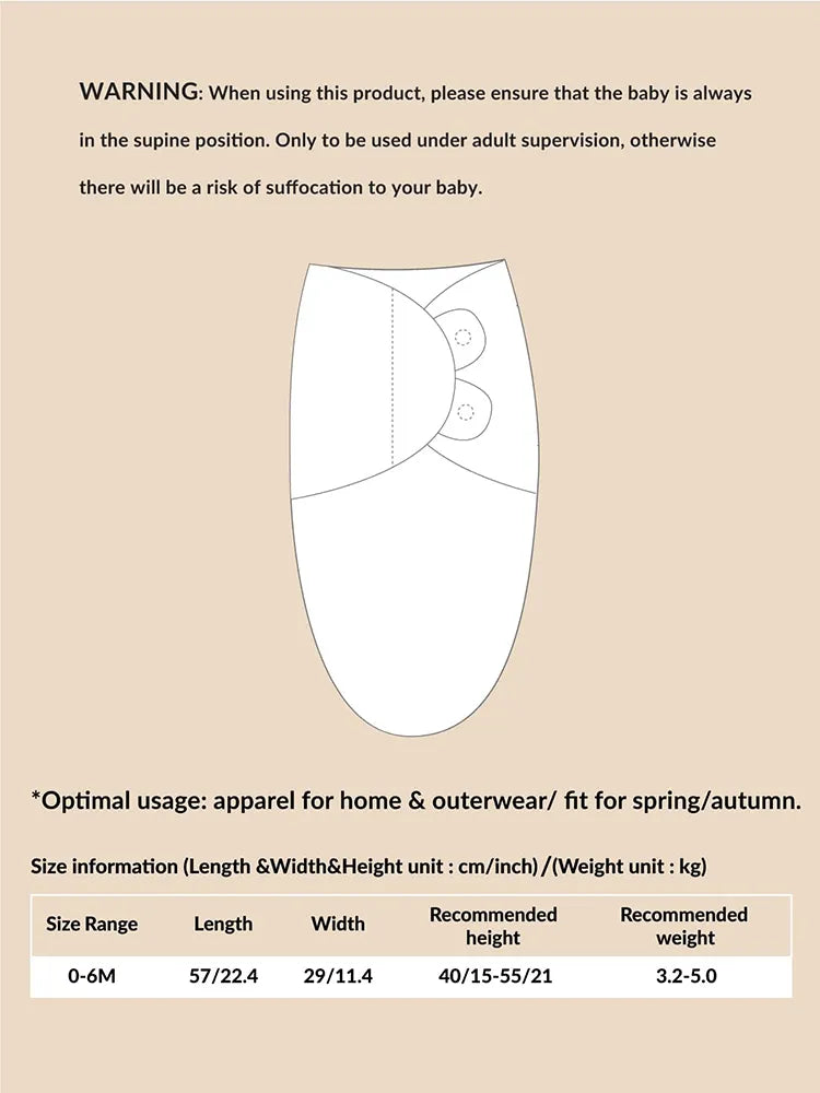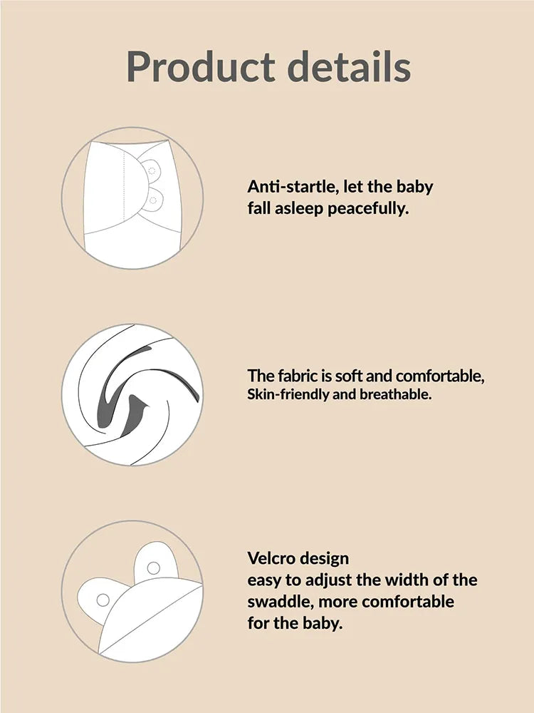 - Diseño seguro: el diseño seguro del envoltorio crea una sensación acogedora, similar a la del útero, ofreciendo comodidad y evitando el reflejo de sobresalto que puede interrumpir el sueño de su bebé.