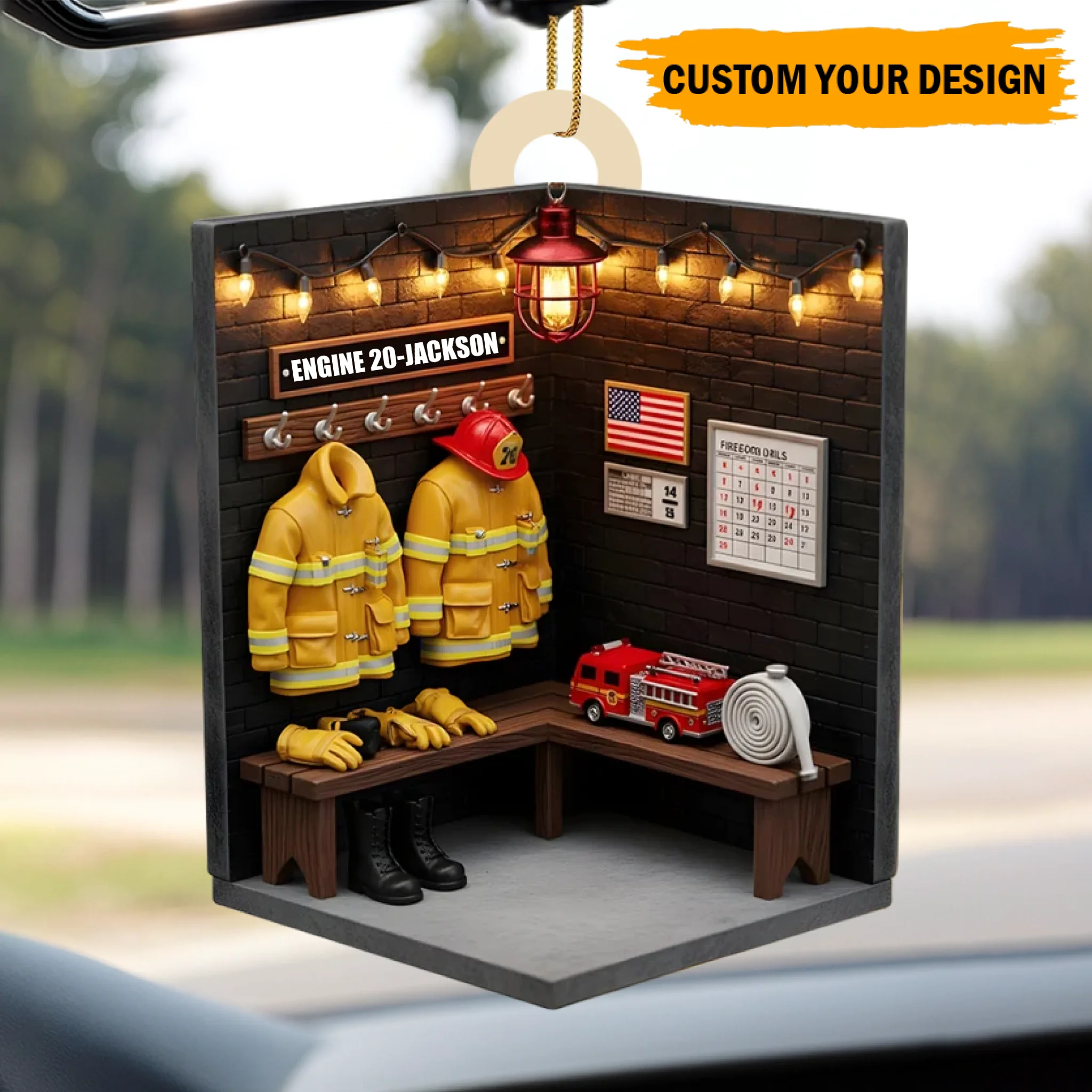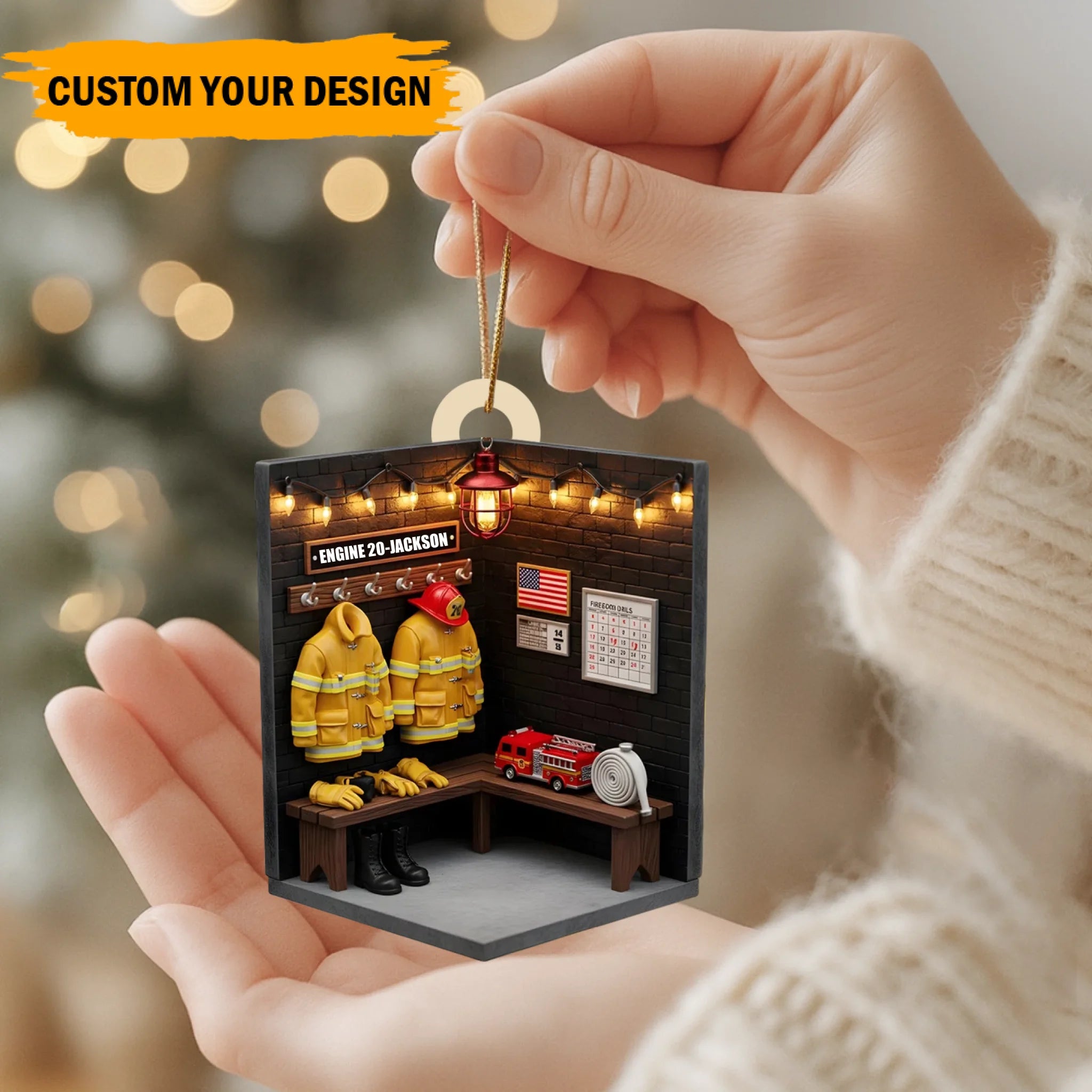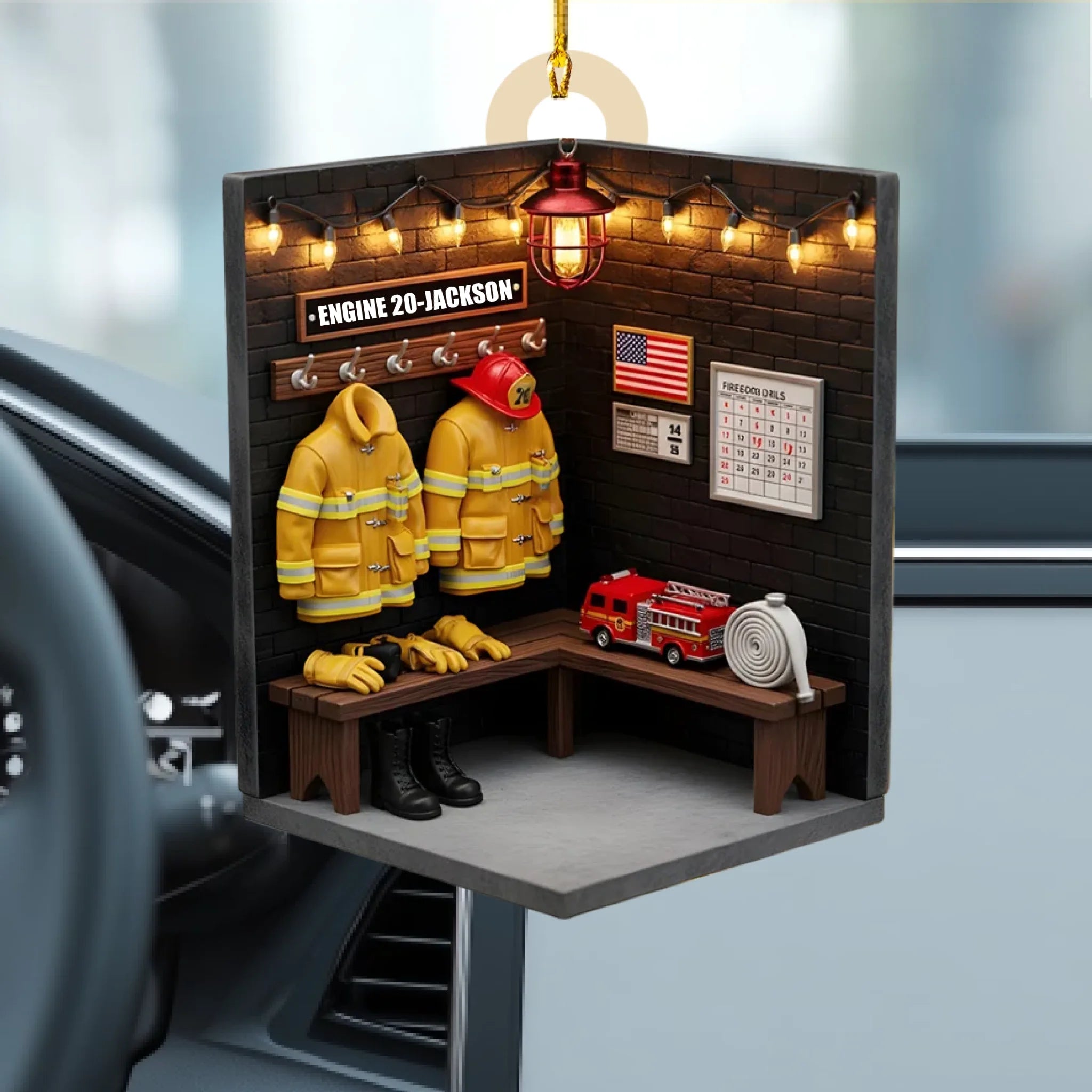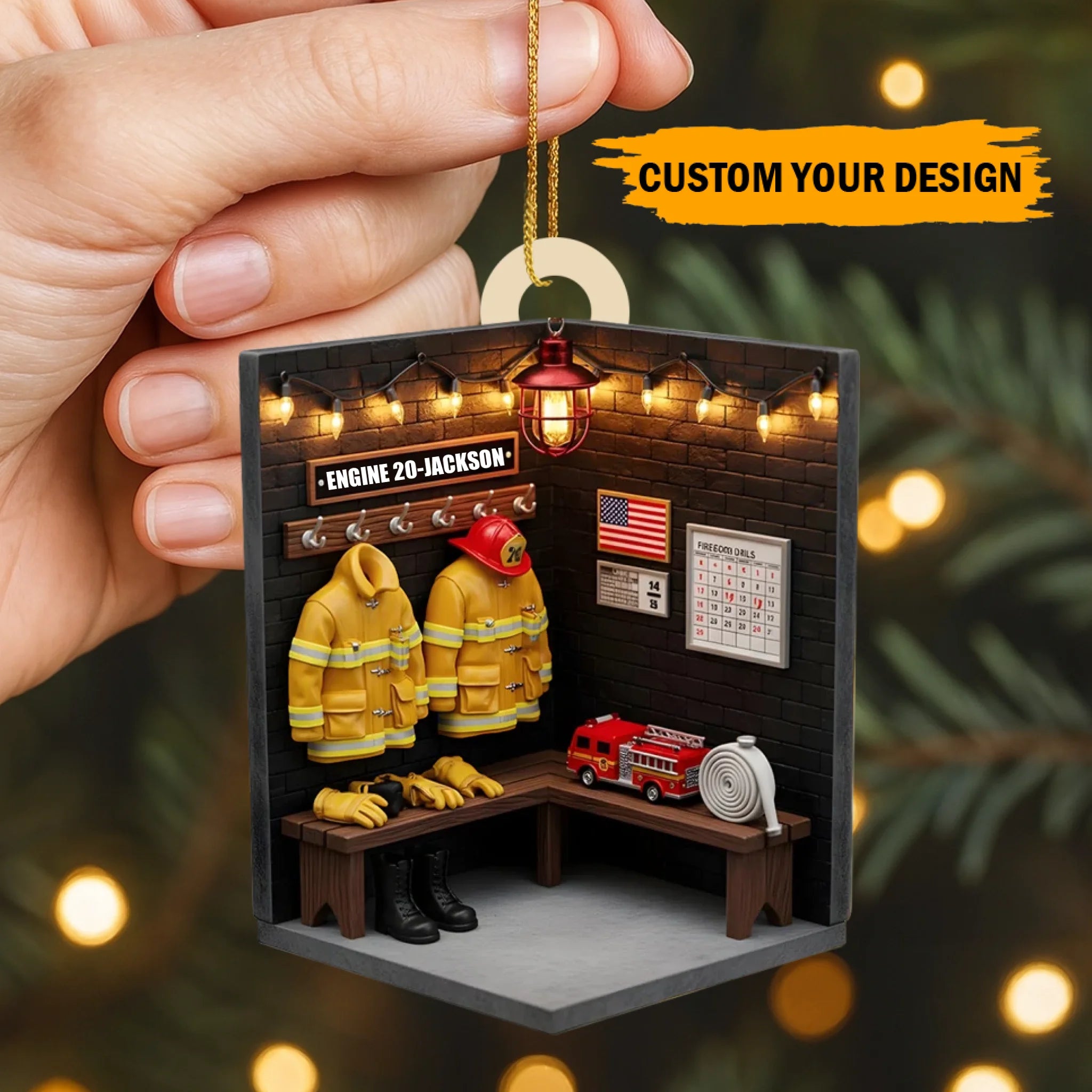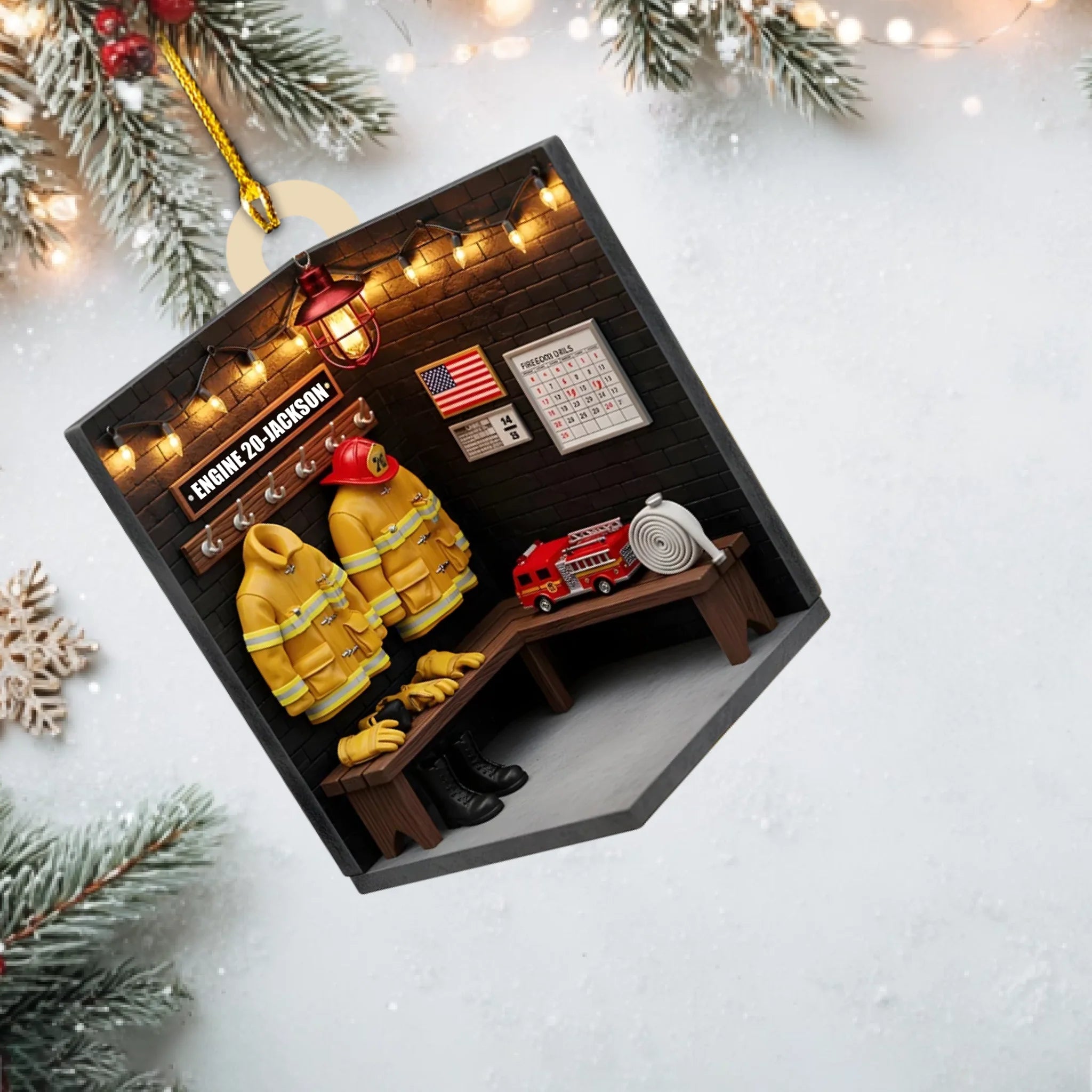 Personalized Firefighter Room Wooden Ornament – Custom Fire Station Gear Room Christmas Gift for Firemen