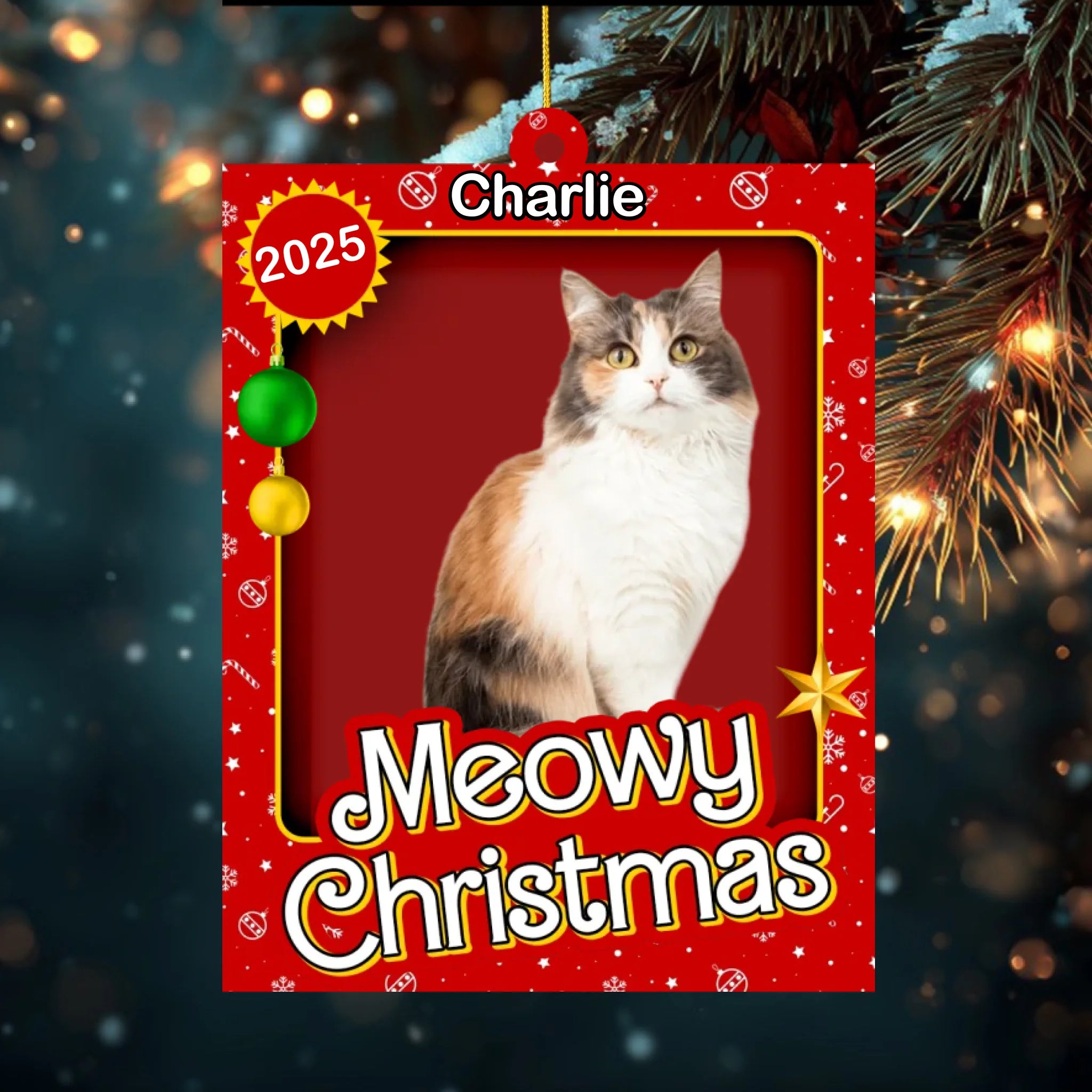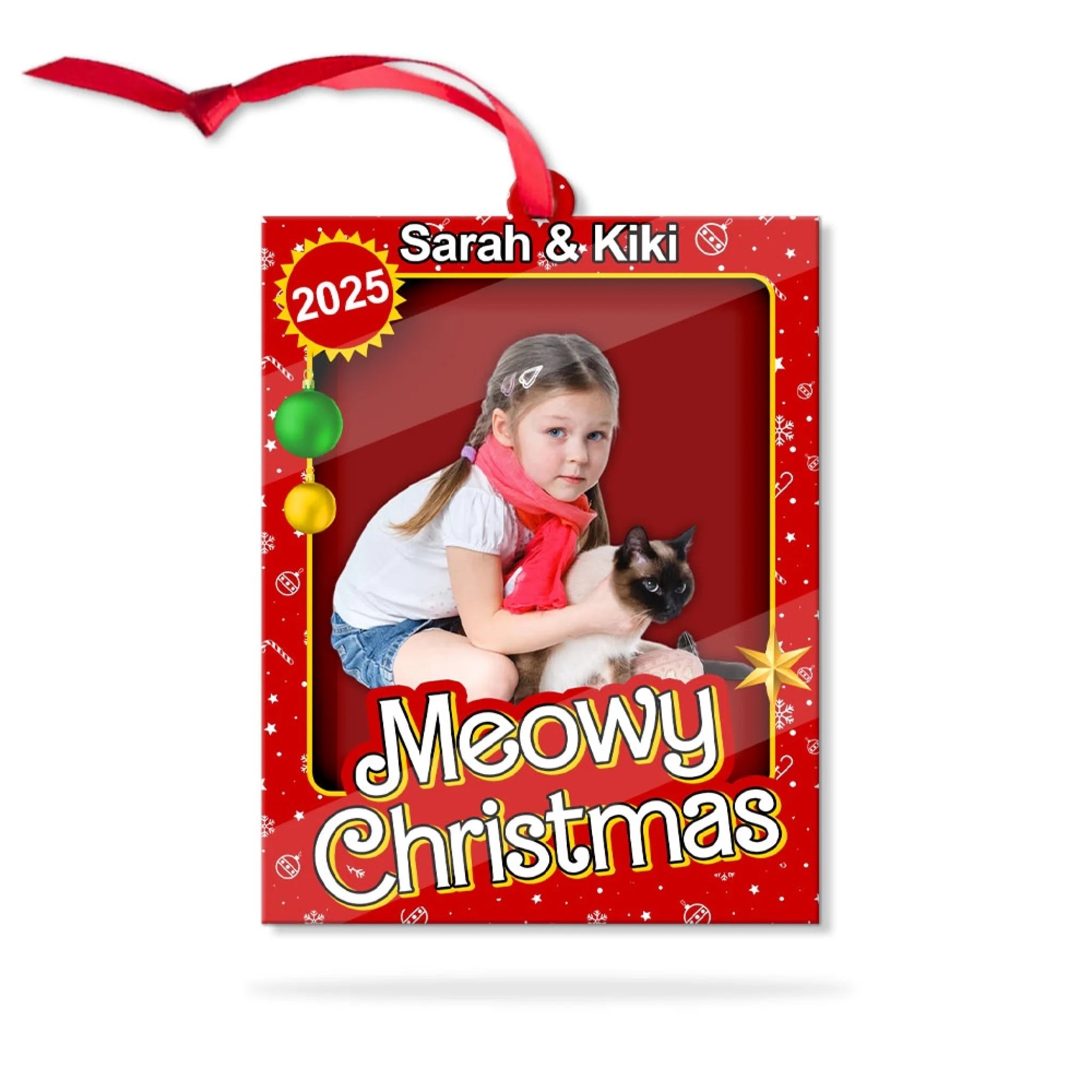 Personalized Meowy Christmas Acrylic Ornament – Custom Photo Cat Ornament with Name & Year | Perfect Gift for Cat Mom or Cat Lover