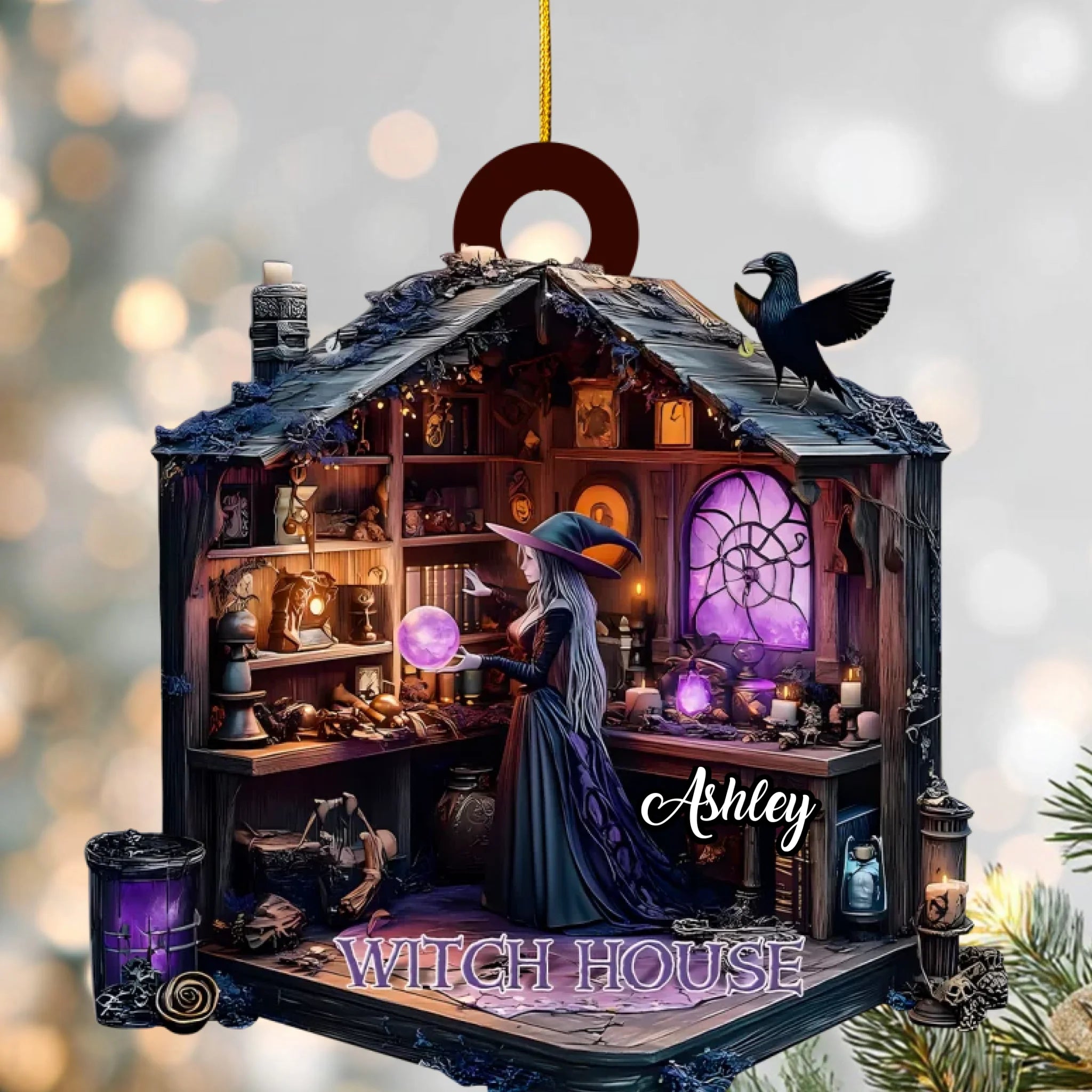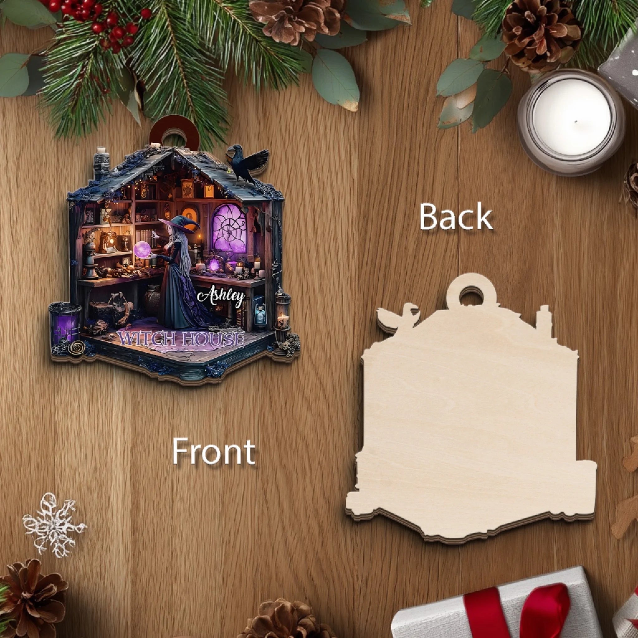 Adorno de madera personalizado de casa de brujas – Decoración de Halloween con nombre personalizado para amantes de la magia y brujas