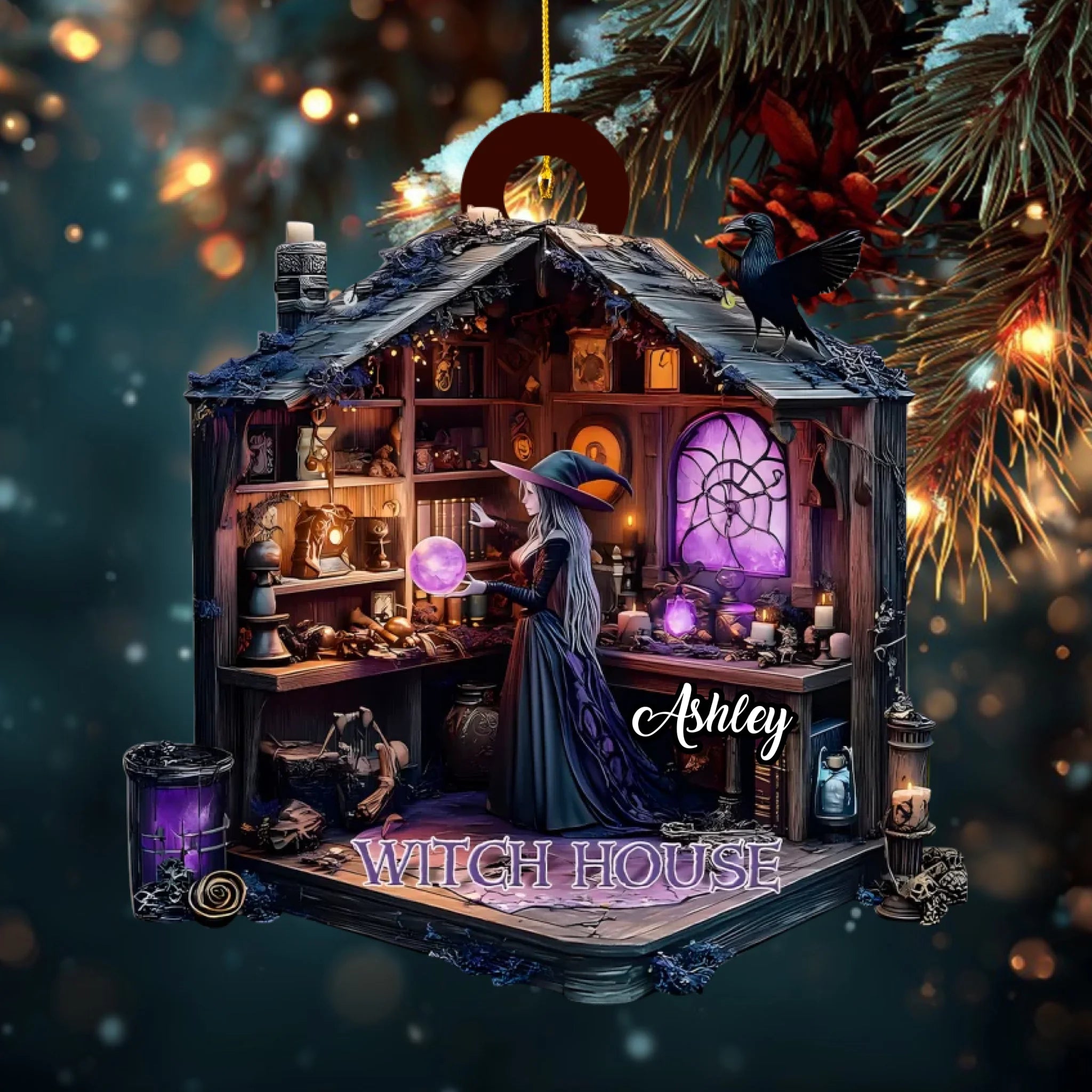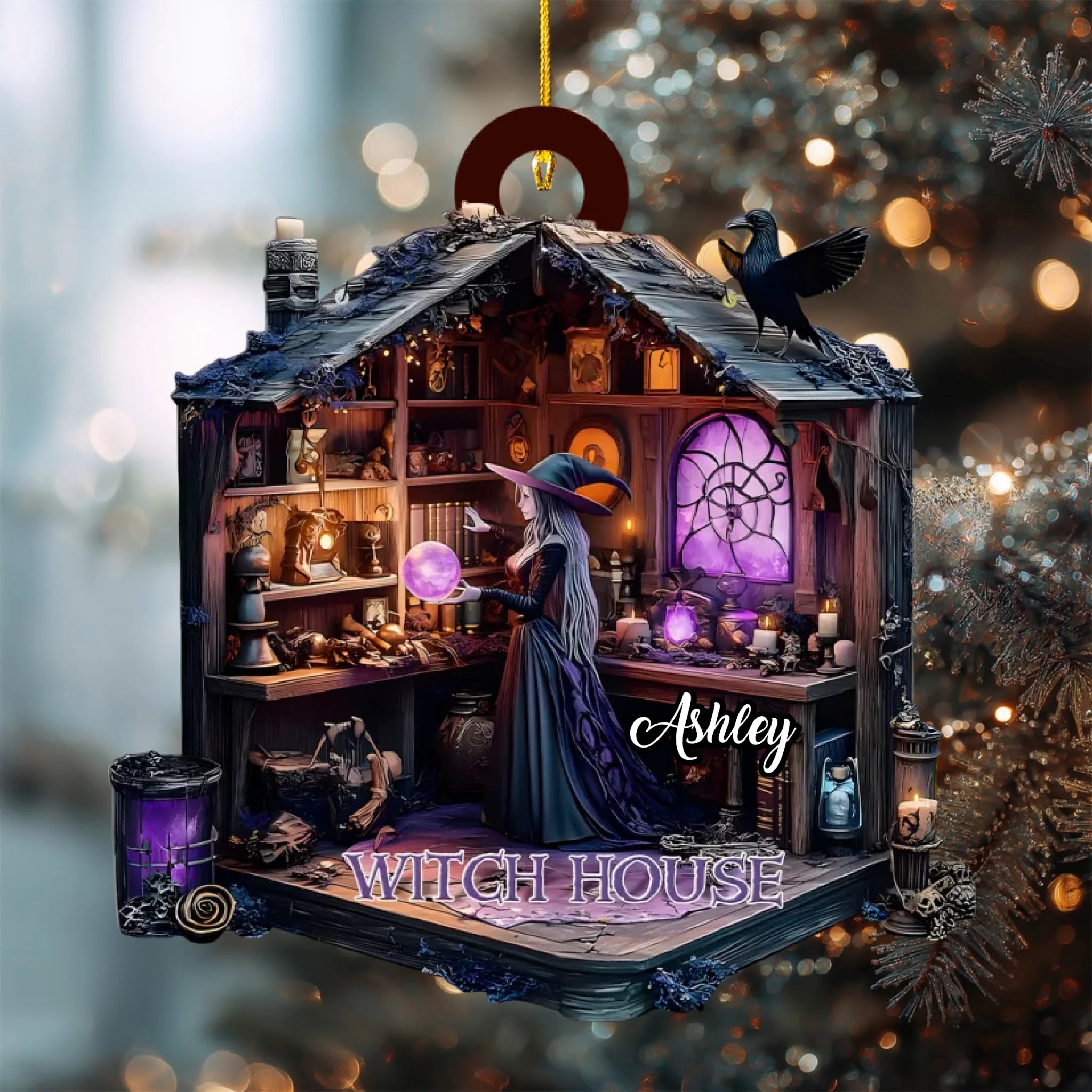 Personalized Witch House Wooden Ornament – Custom Name Halloween Decoration for Magic Lovers and Witches