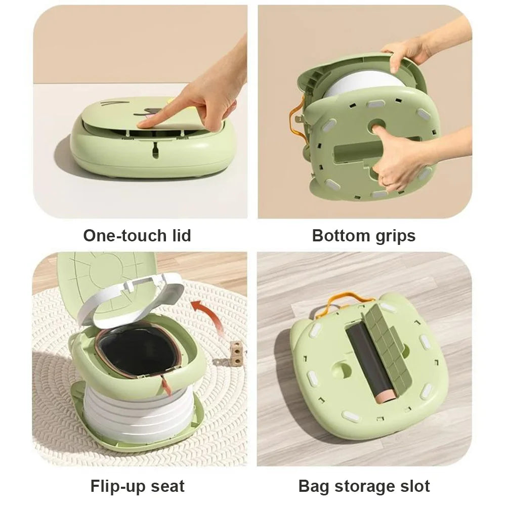 Never worry about finding a restroom again! This adorable and highly compact Portable Folding Toilet is the ultimate emergency solution for toddlers during travel, car rides, camping, or outdoor adventures. It features an Instant Open/Close mechanism and folds down to a slim, easy-to-store size.
