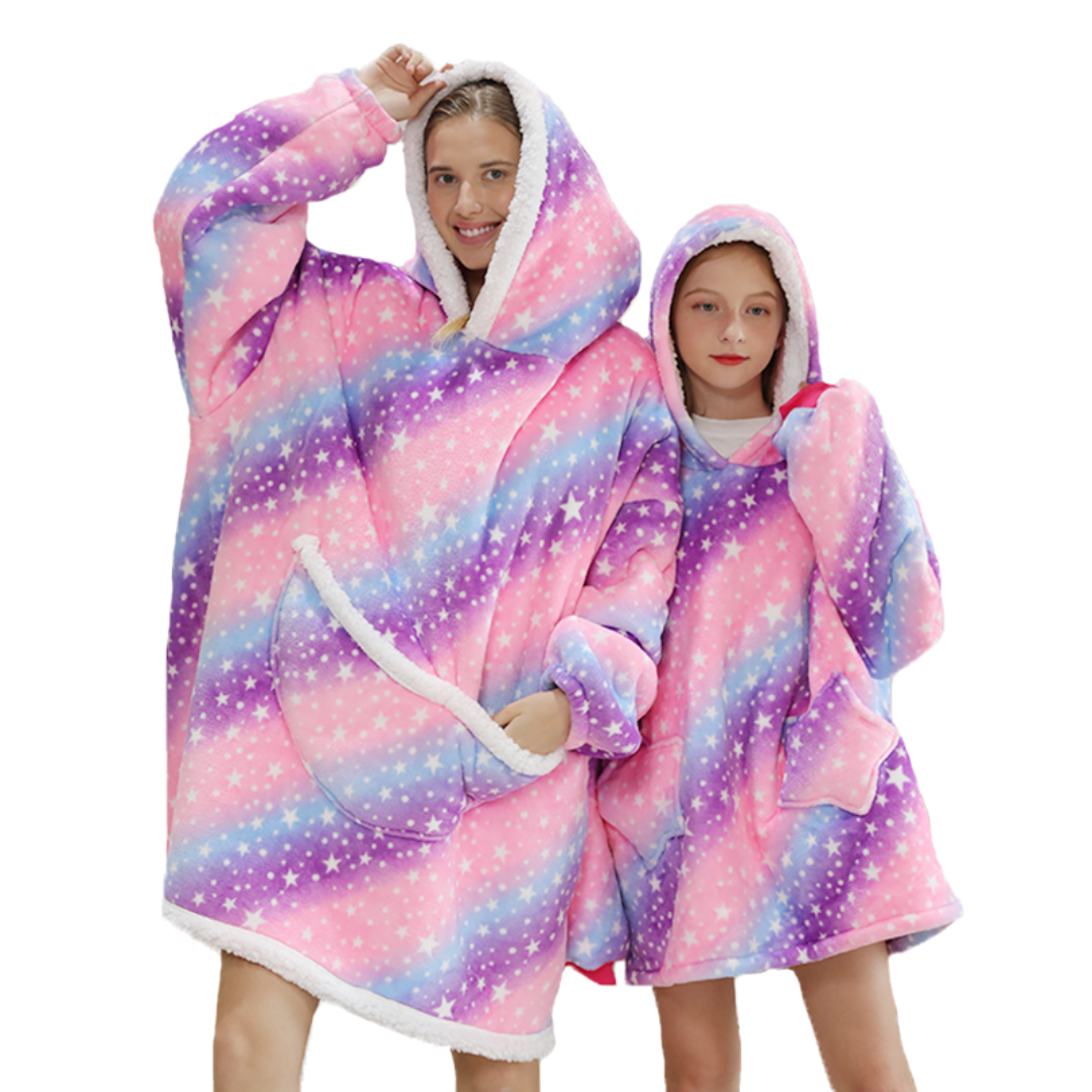 Manta Sherpa con capucha familiar con diseño de estrella morada
