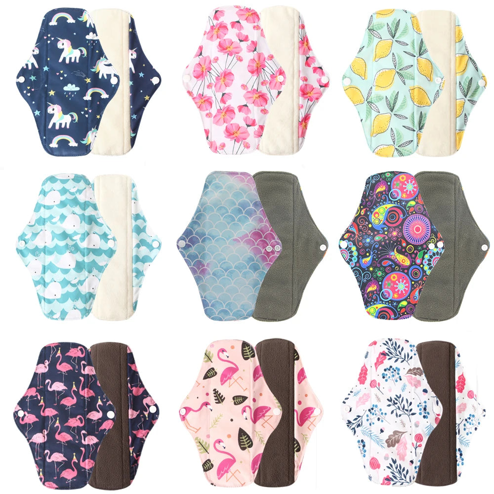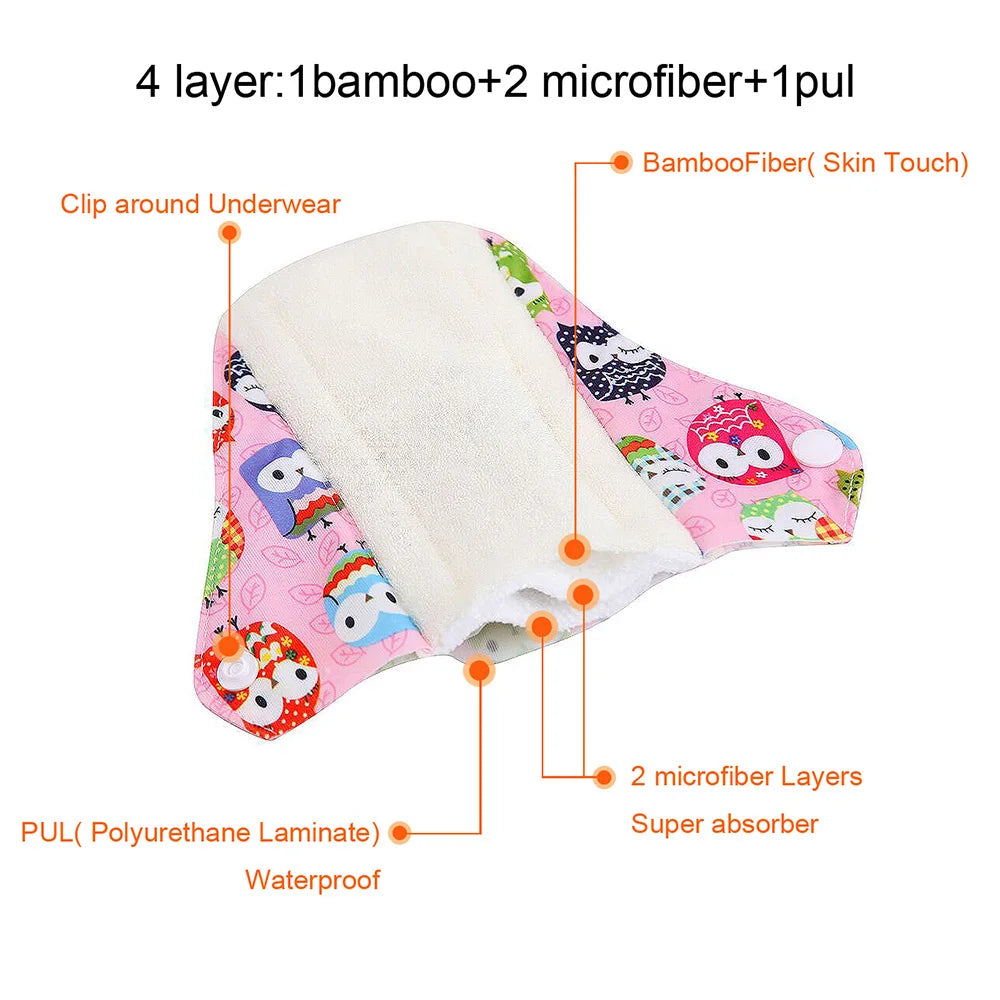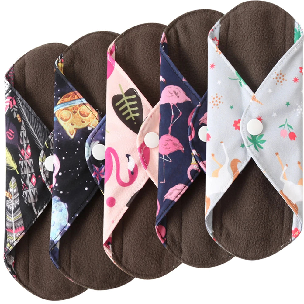 Toallas menstruales de bambú reutilizables – Paquete de 5 toallas sanitarias lavables, súper absorbentes y suaves