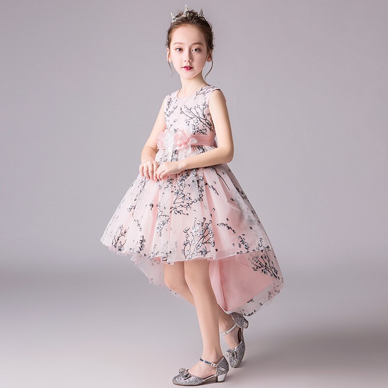 Vestido de fiesta de moda para niñas con estampado floral y parche de rosas