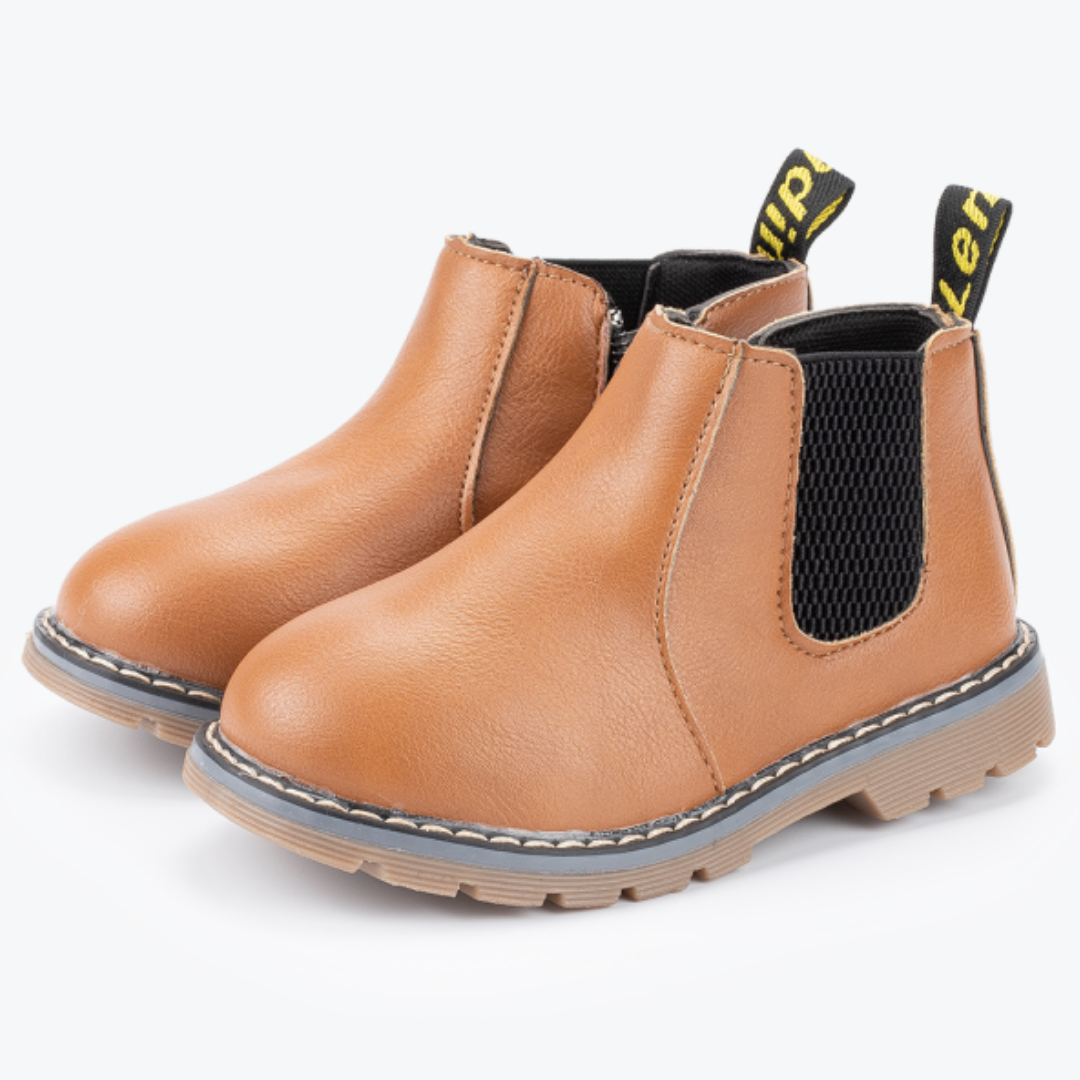 Zapatos de invierno de cuero para niños con suela de goma antideslizante y cremallera lateral