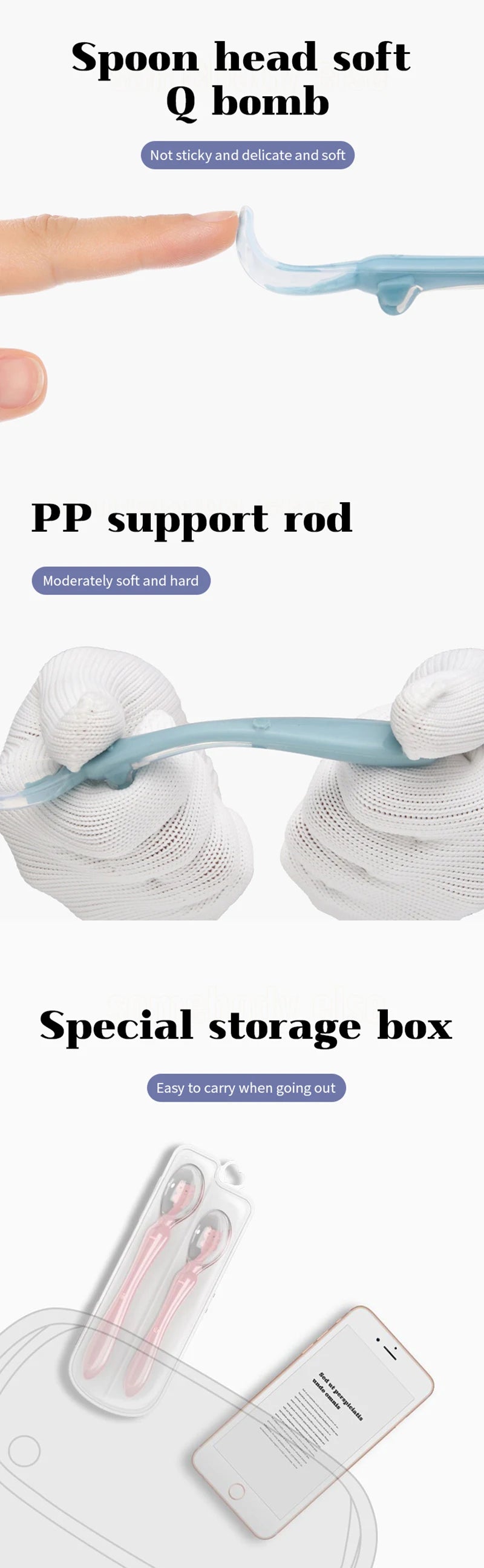Material Features: Our feeding spoon is crafted from high-quality silicone that is free from harmful substances such as latex, nitrosamine, phthalate, BPA, and PVC, ensuring the safety of your little one during mealtime.