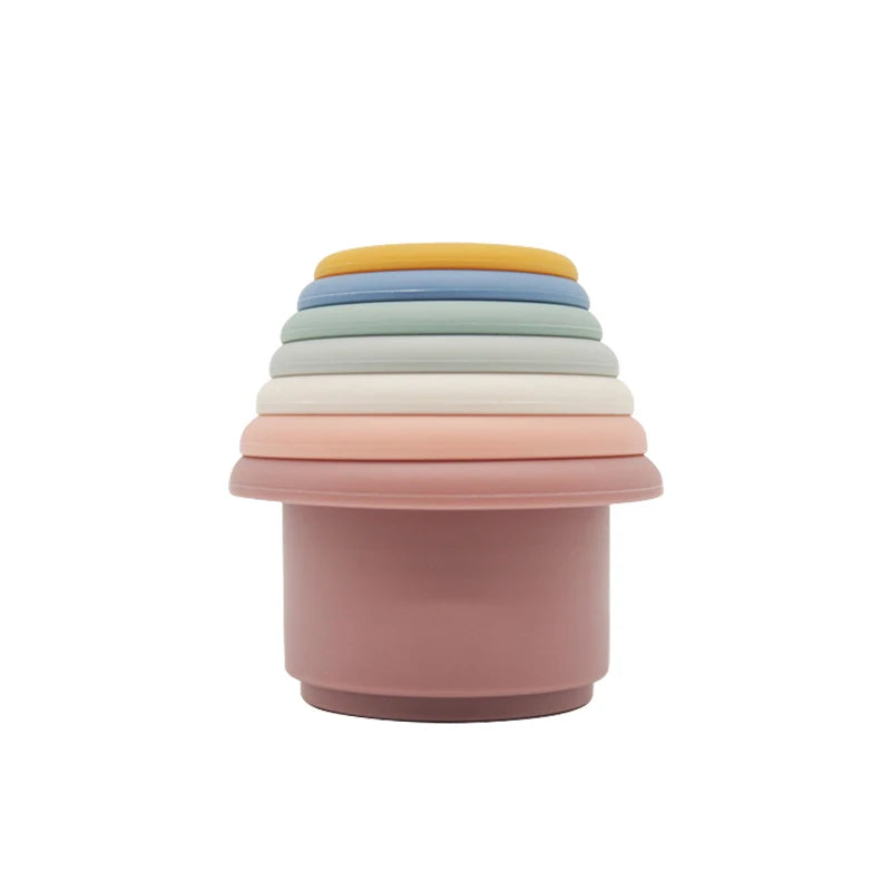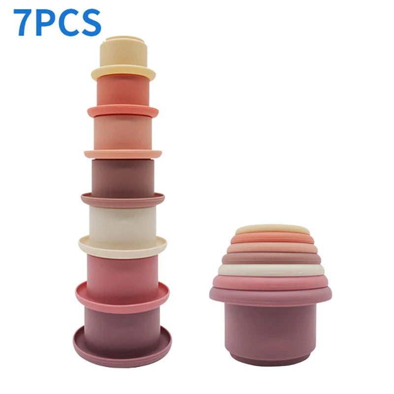¡Presentamos nuestros innovadores vasos apilables de silicona, diseñados para que el aprendizaje sea divertido para tu pequeño! Fabricadas con material ABS de alta calidad, estas tazas cumplen una variedad de funciones, lo que las hace adecuadas para jugar en la playa, la hora del baño y actividades en interiores.