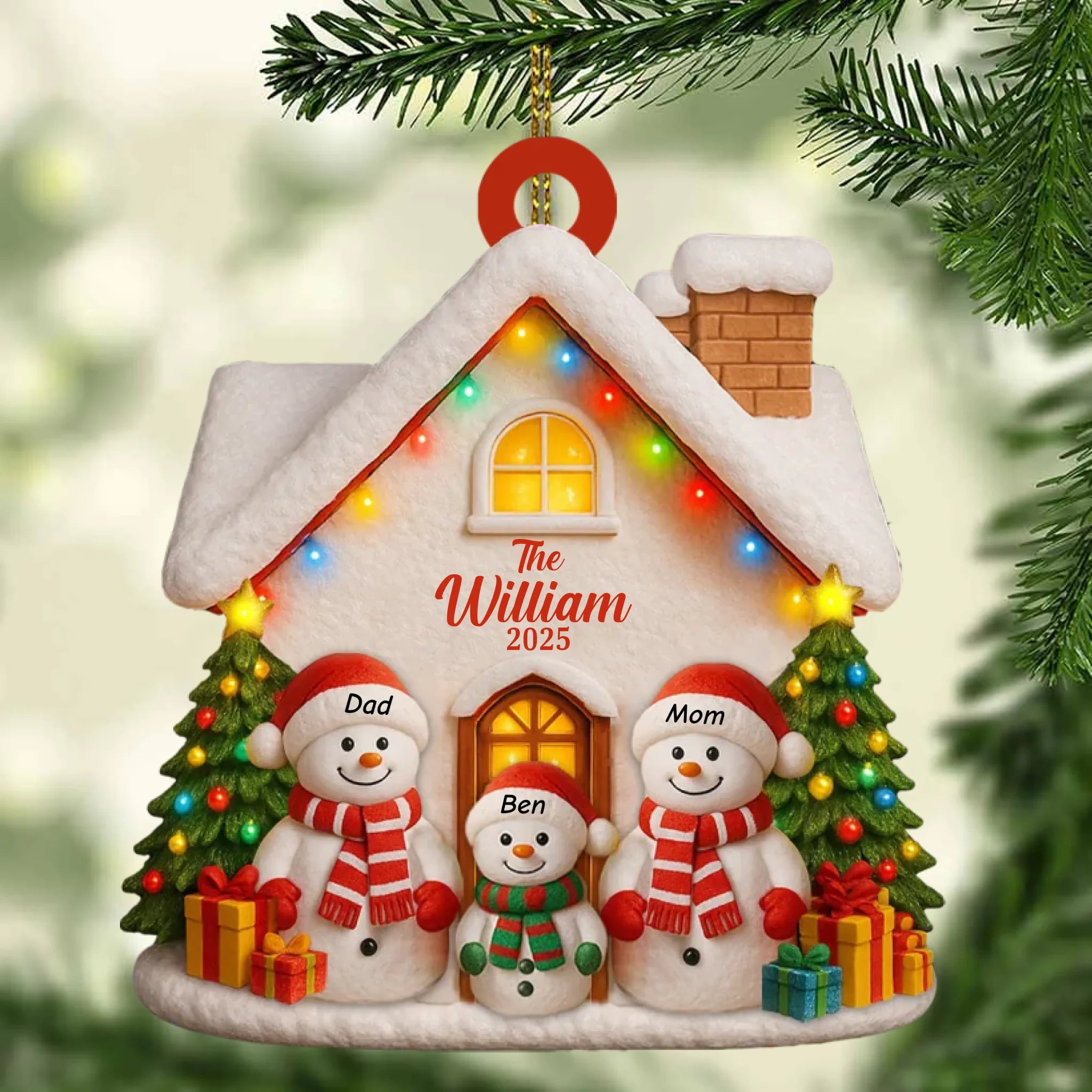 Featuring adorable snowmen representing parents and children, this charming design brings a cozy and festive spirit to your home.