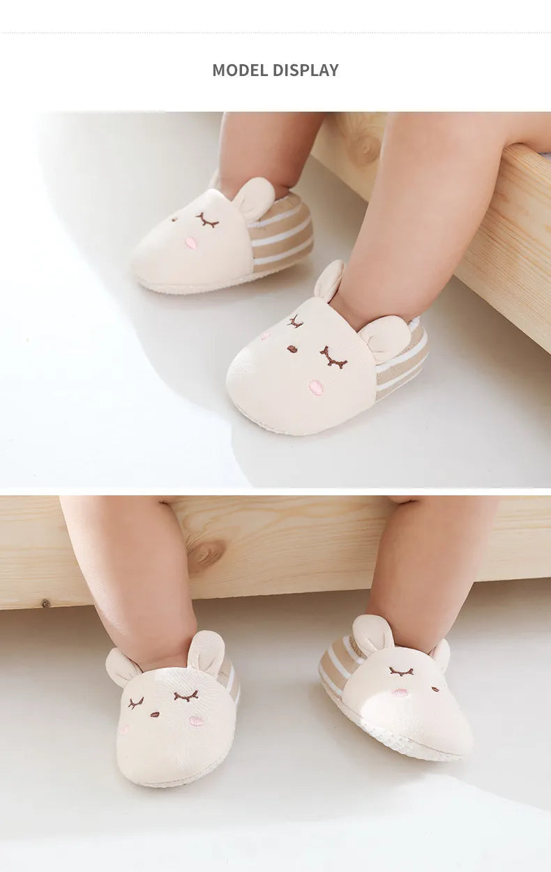 Comfortable and Safe: Made from high-quality cotton, the shoe upper material provides a soft and comfortable fit. The slip-on design allows for quick and hassle-free changes, making them perfect for active babies. The non-slip feature ensures stability, preventing any slips or falls.