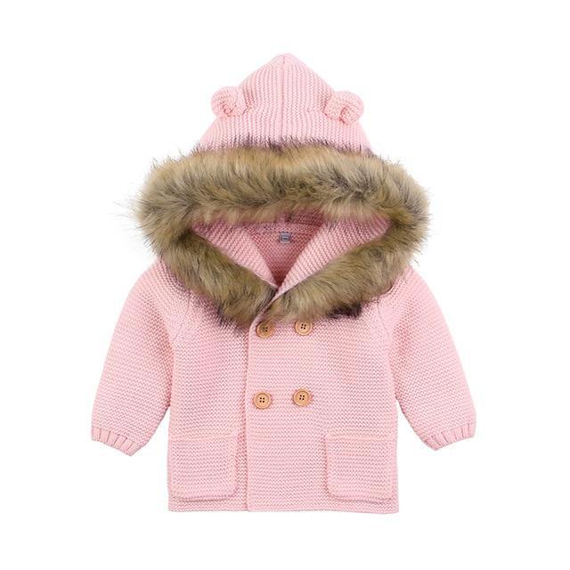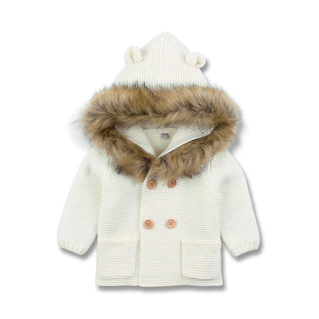 - En lugar de un cuello liso, el suéter presenta una capucha peluda que se hace aún más adorable con lindas orejas en 3D que dan una apariencia atractiva a los niños cuando lo usan.