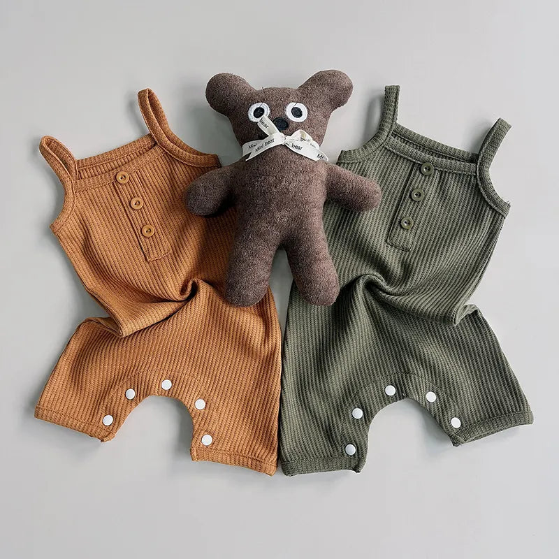 ¡Haz tu pedido ahora y viste a tu pequeño con el máximo estilo veraniego con nuestros monos de una pieza de algodón sin mangas!