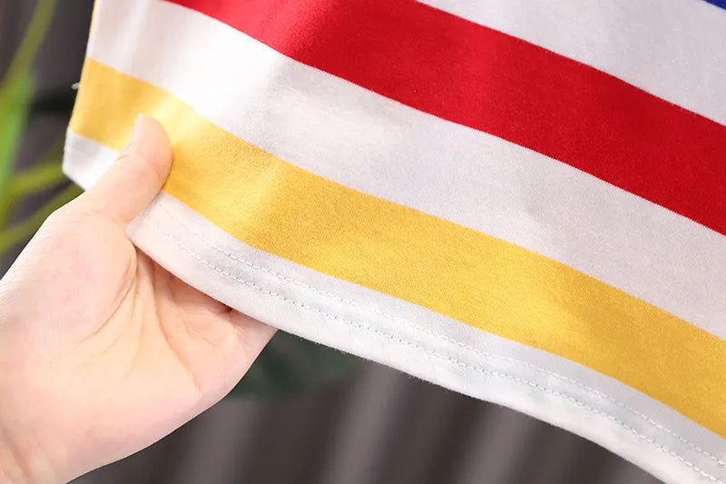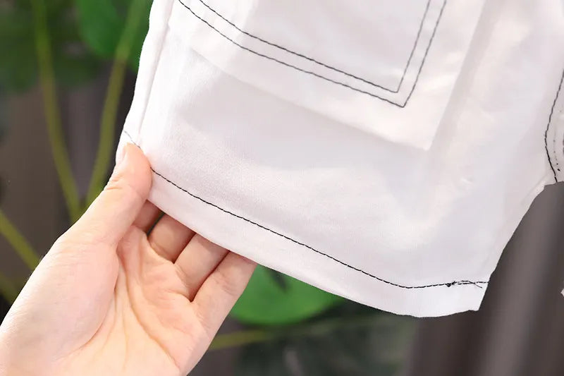 Mejora el guardarropa de verano de tu hijo con nuestra divertida ropa de dinosaurios de dibujos animados para niños. Este moderno conjunto incluye una cómoda camiseta, pantalones cortos a juego y un lindo bolso, lo que lo convierte en una opción versátil y elegante para niños y niñas de 12 meses en adelante.
