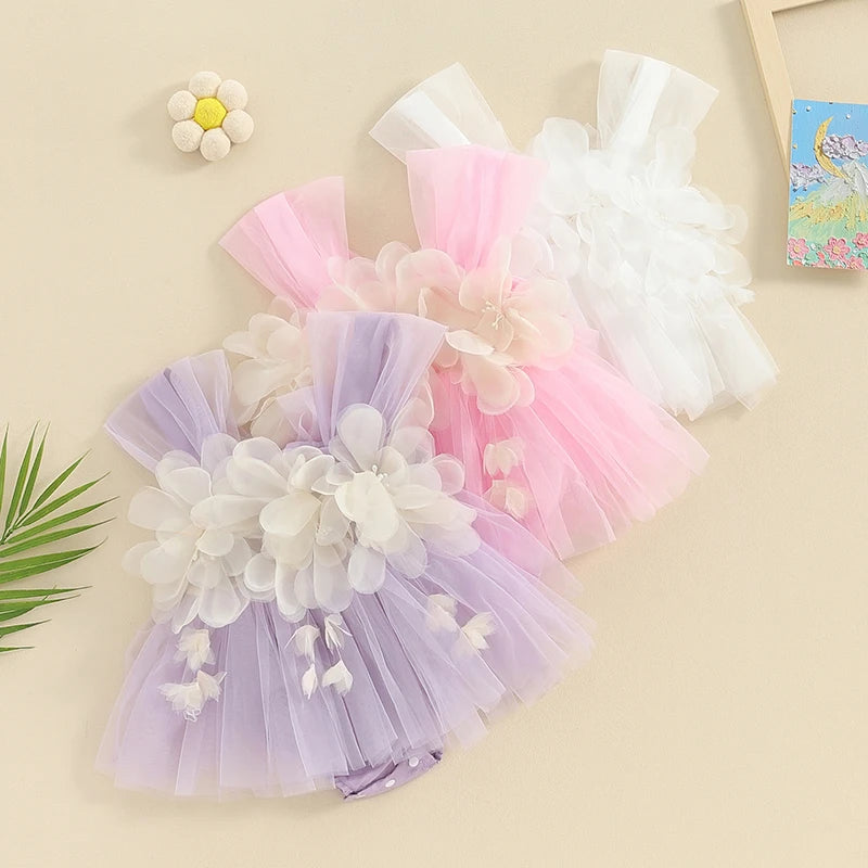 Introducing Summer Tulle Flower Romper: Infant Girls' Sleeveless Jumpsuit