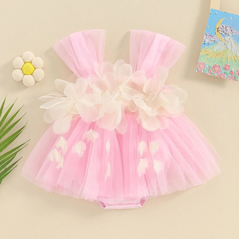 Dress your little princess in style with our adorable Summer Tulle Flower Romper, perfect for sunny days and special occasions. Here's what makes it special: