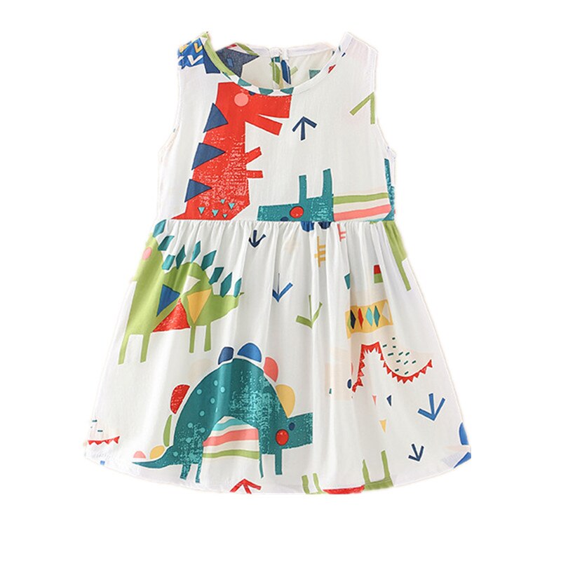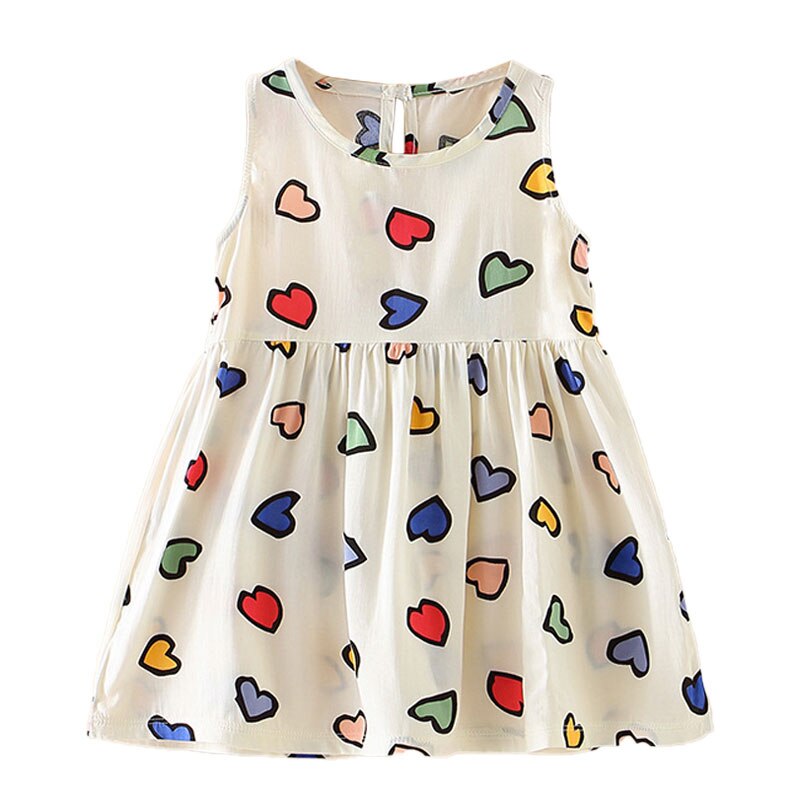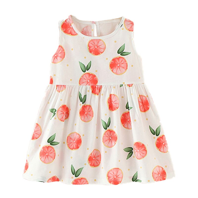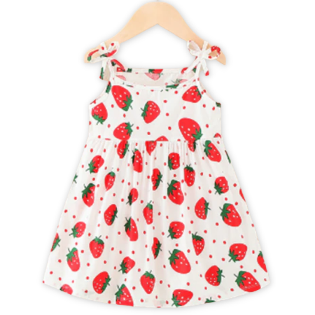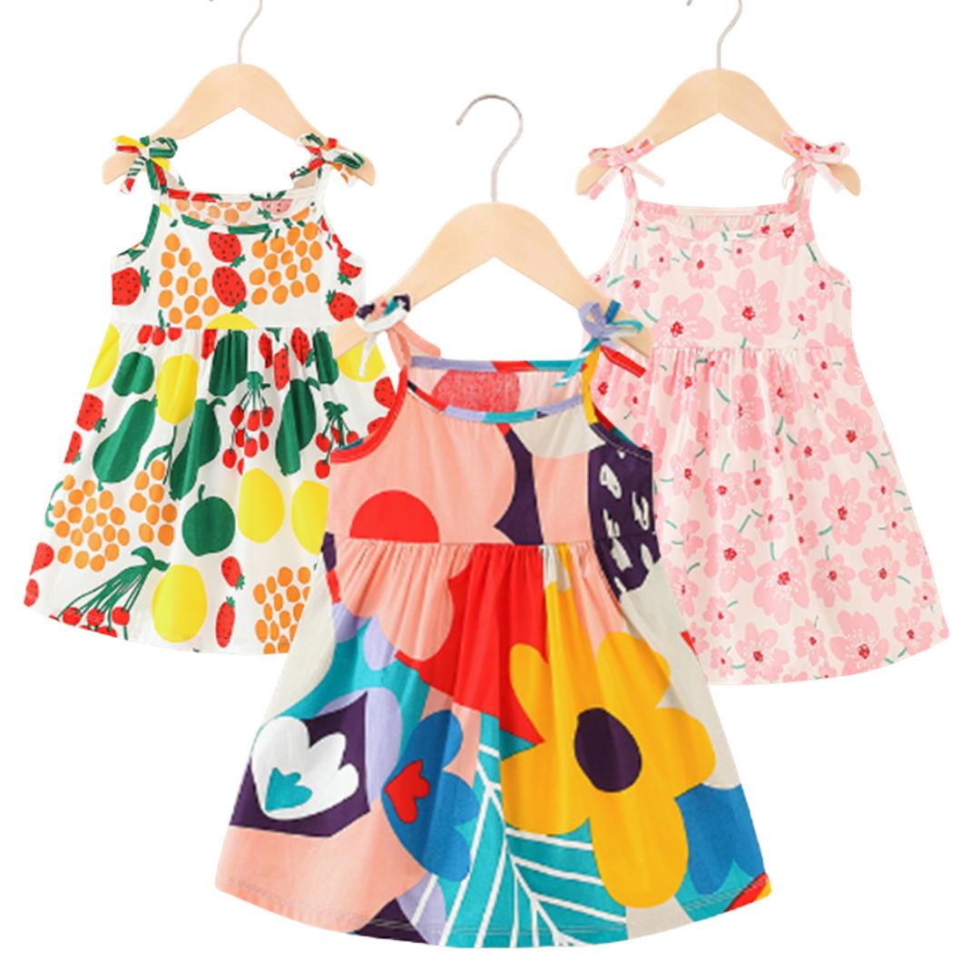 Vestido de verano para niña con tirantes de cinta y estampado dulce