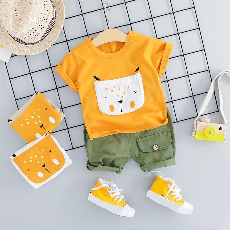 La tela es lisa, suave y cómoda de llevar. La cintura elástica permite que los niños tengan un ajuste perfecto. Tiene un bolsillo grande que le da un estilo callejero. Los niños vestidos con esta linda camiseta de cachorro junto con pantalones verdes se ven adorables y este conjunto es el atuendo ideal para los veranos.