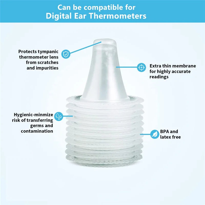 Universal Disposable Ear Thermometer Probe Covers (200 Pcs), Hygienic Refill Cap Lens Filters for Digital Thermometers (Compatible with Braun Models)