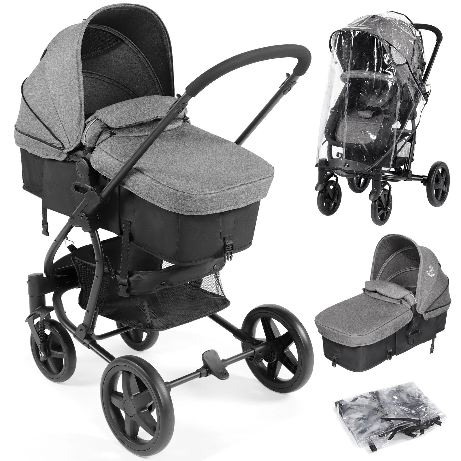 Versatile 2-in-1 Baby Travel System (Max 15 KG) - Reversible Seat, Convertible Pram/Pushchair, Large All-Terrain Wheels, and Accessory Kit