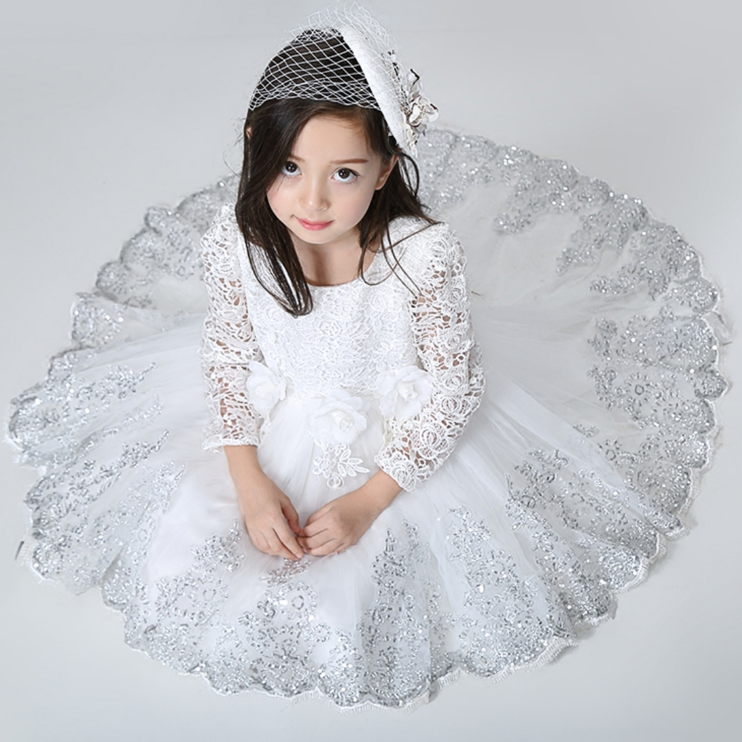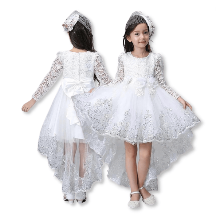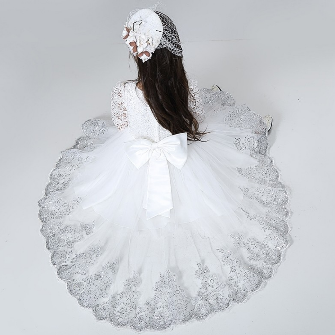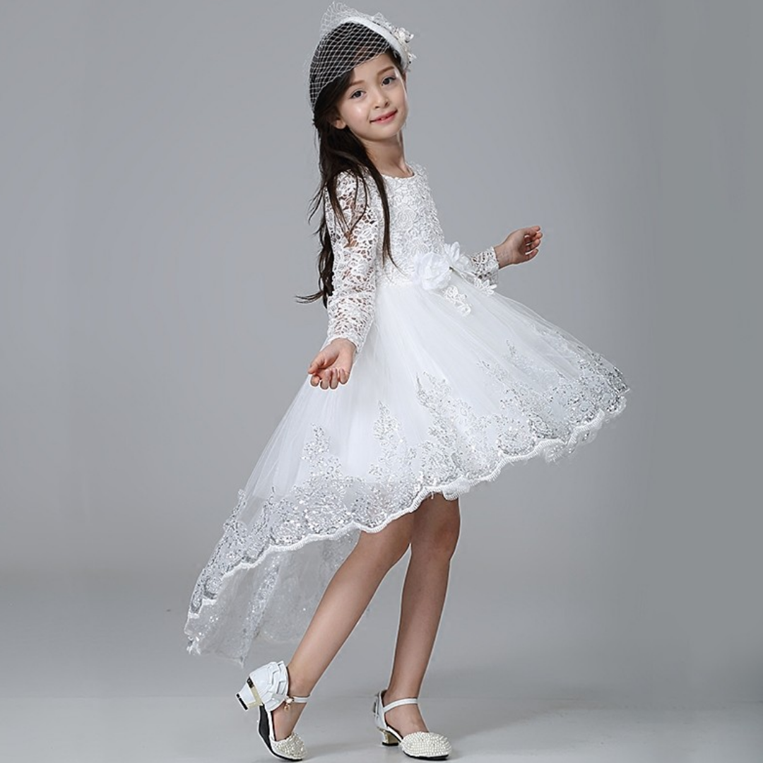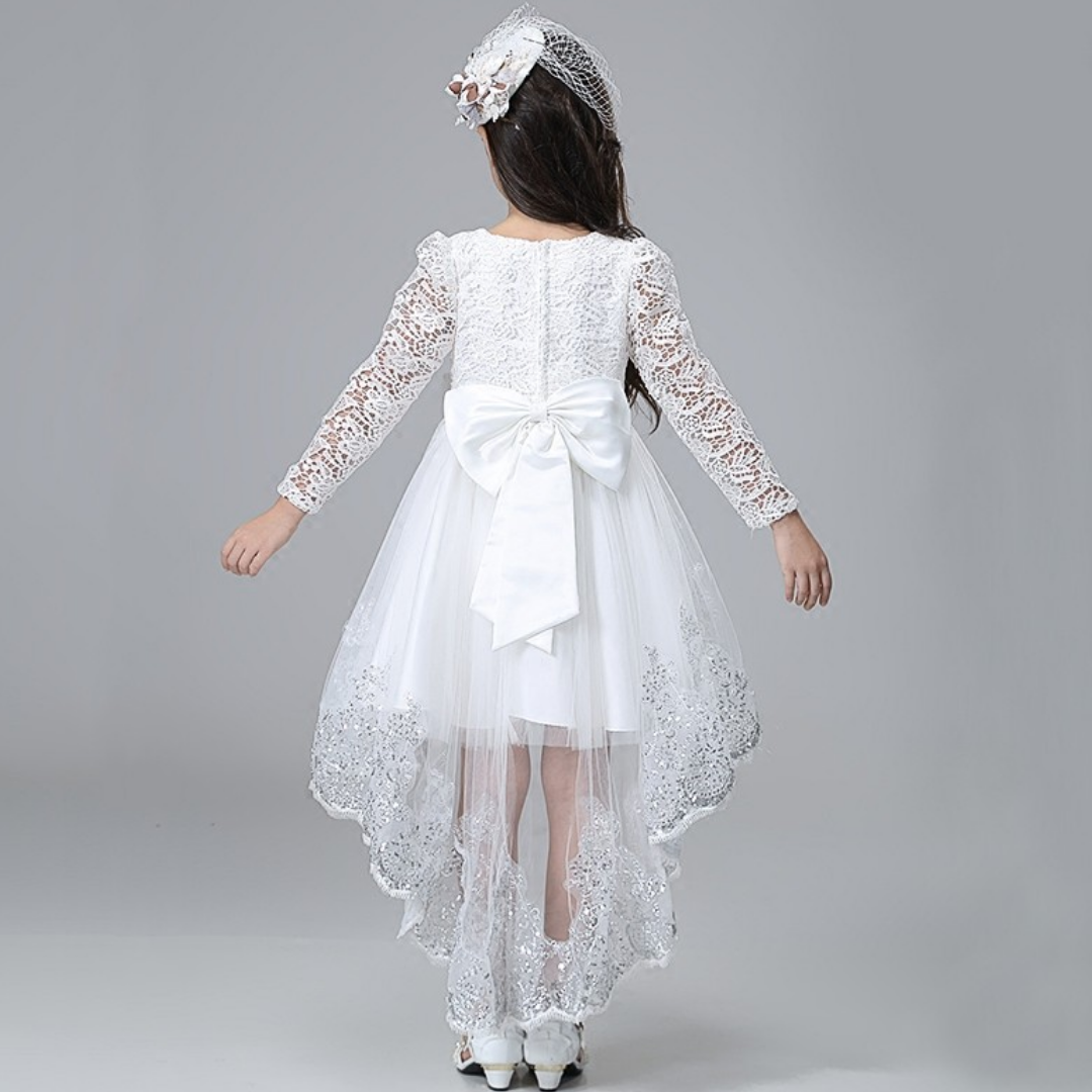 Vestido de fiesta de princesa con espalda larga y diseño de encaje completo blanco