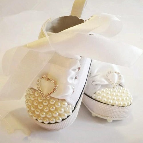 - Impresionantes zapatitos de bebé hechos a mano con pedrería y nudo mariposa.