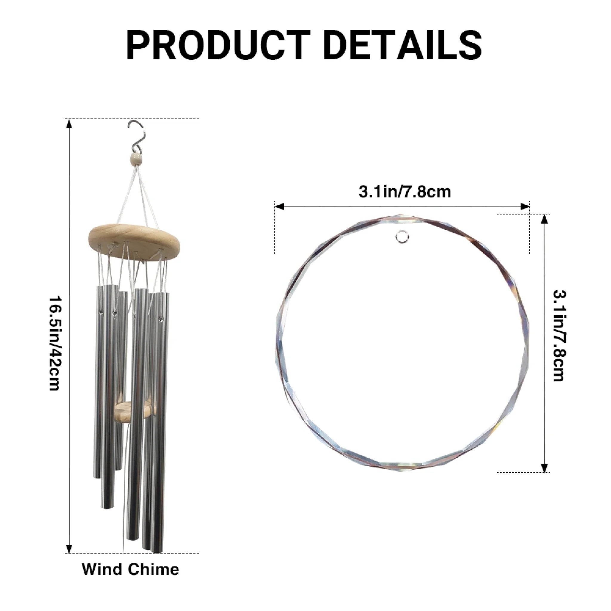 Wind chime with dimensions on a white background