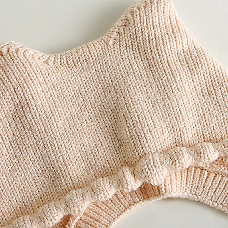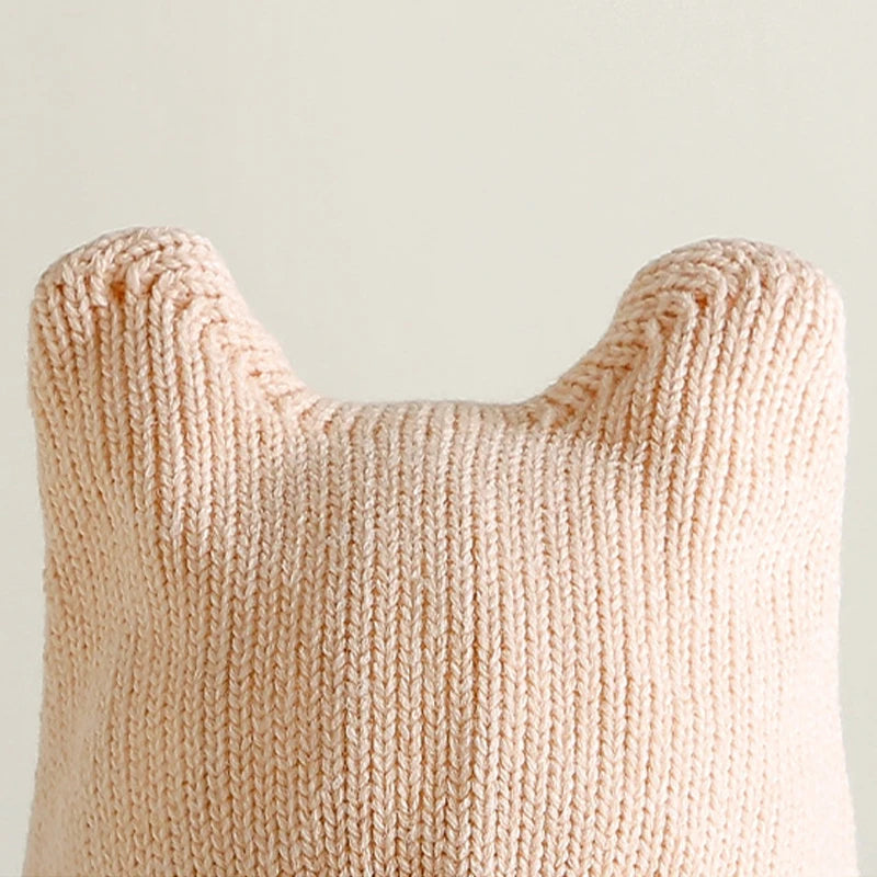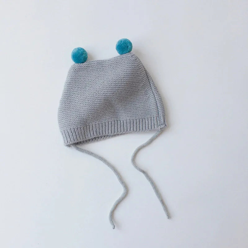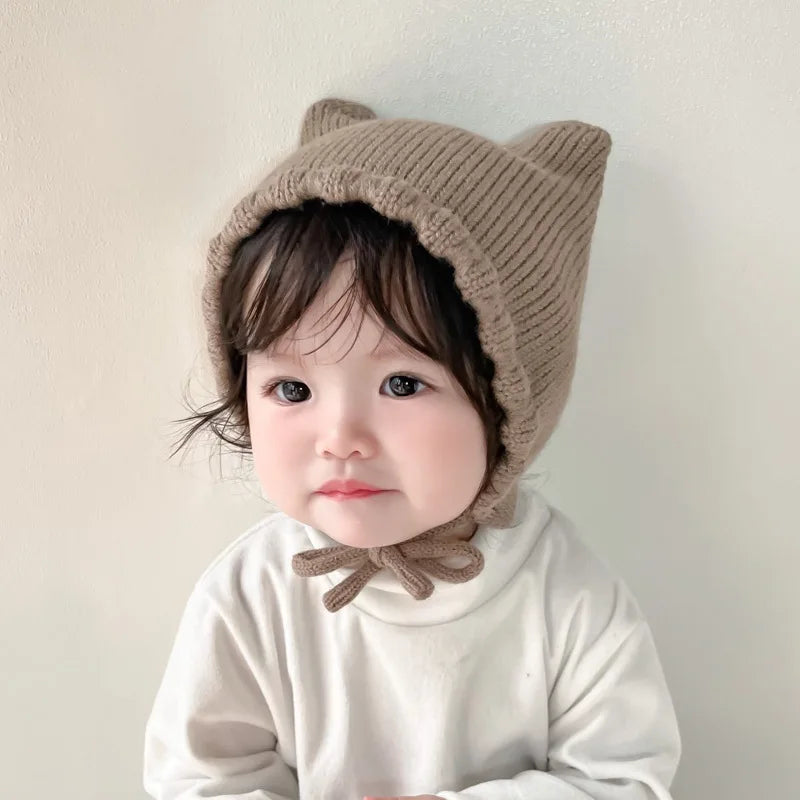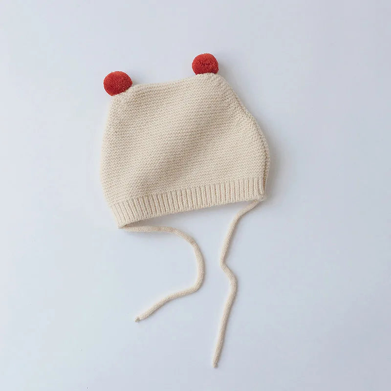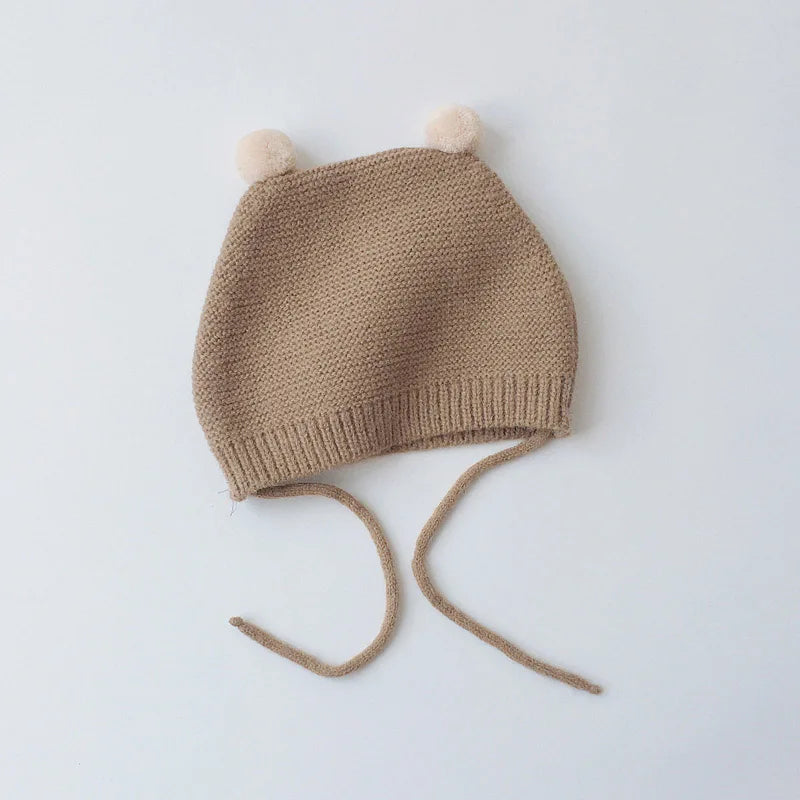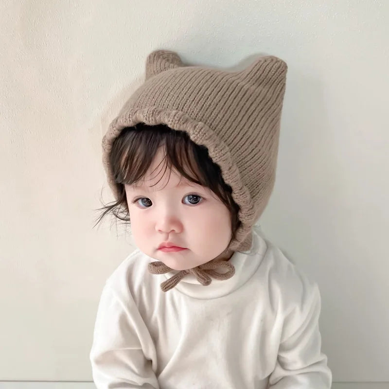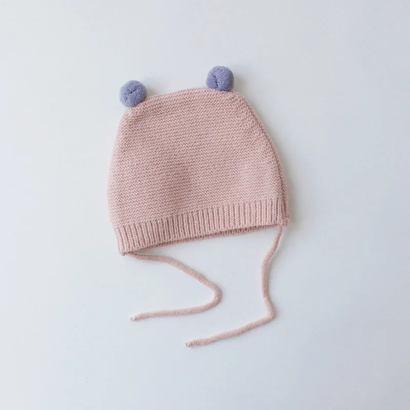 Gorro de punto para bebé de dibujos animados de invierno - Gorro con protección para los oídos de color sólido