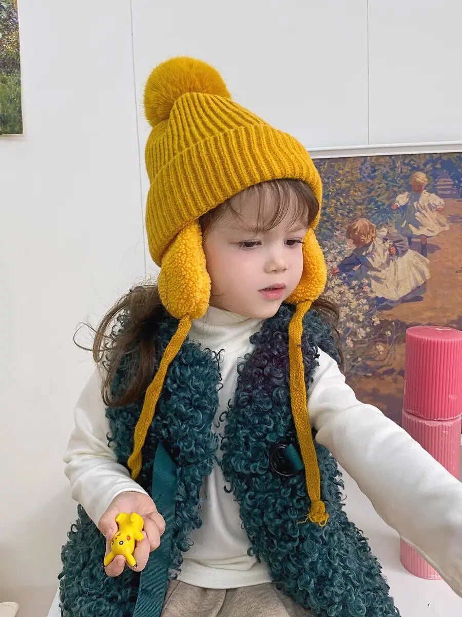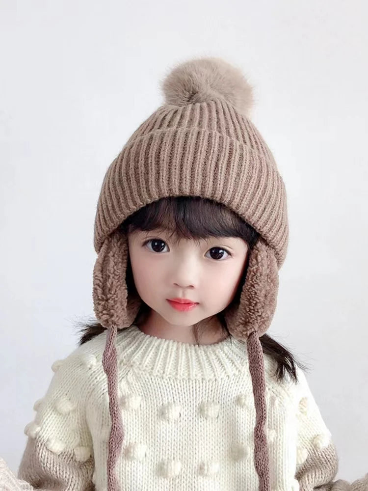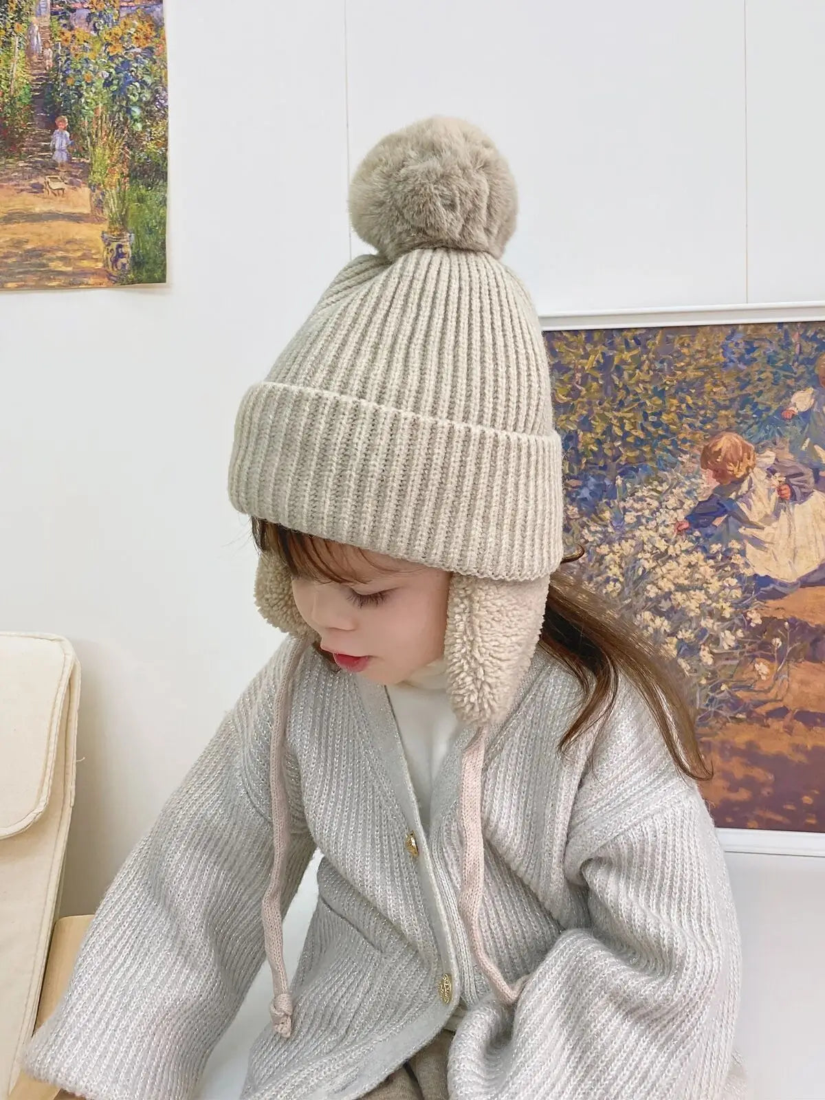 Gorra de moda de invierno para niños: ¡lana acogedora, resistente al viento y bonitos pompones!