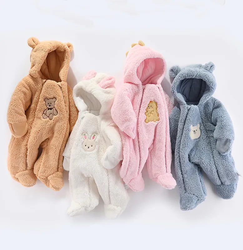 Winter Hooded Romper for Newborns - Cozy Cartoon Style
