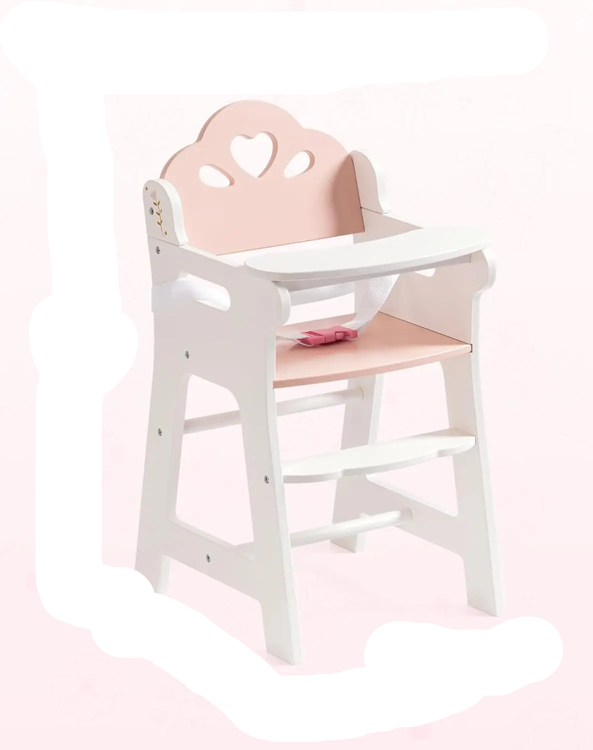 Lightweight yet sturdy, it’s easy to assemble and perfectly sized for dolls measuring 18–20 inches. Whether for feeding, storytelling, or tea parties, this high chair encourages children to practice care, empathy, and creativity.