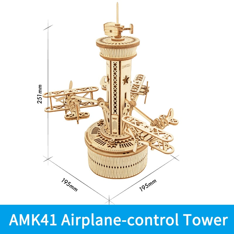 Juguete de madera | Caja de música mecánica de la torre de control del avión | Regalo para tus hijos